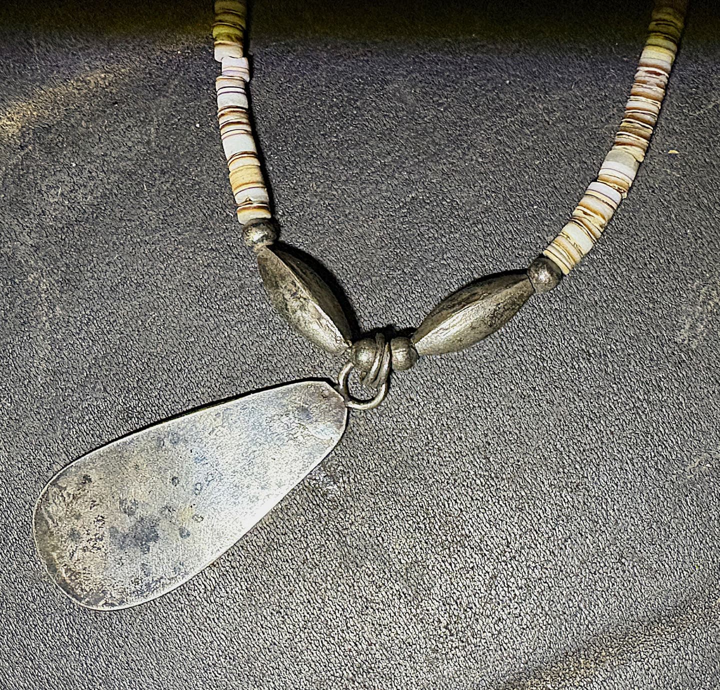 She showed me the necklace and had some questions about it. We both thought it was nickel silver and a modern stringing.