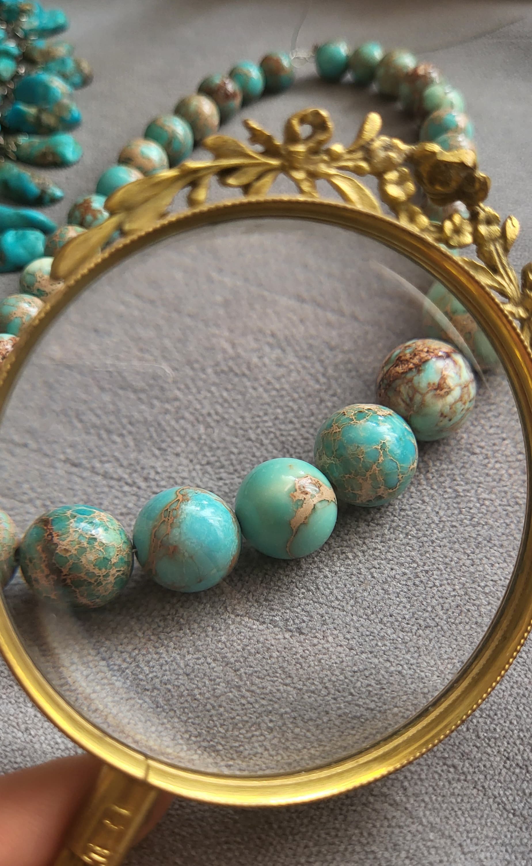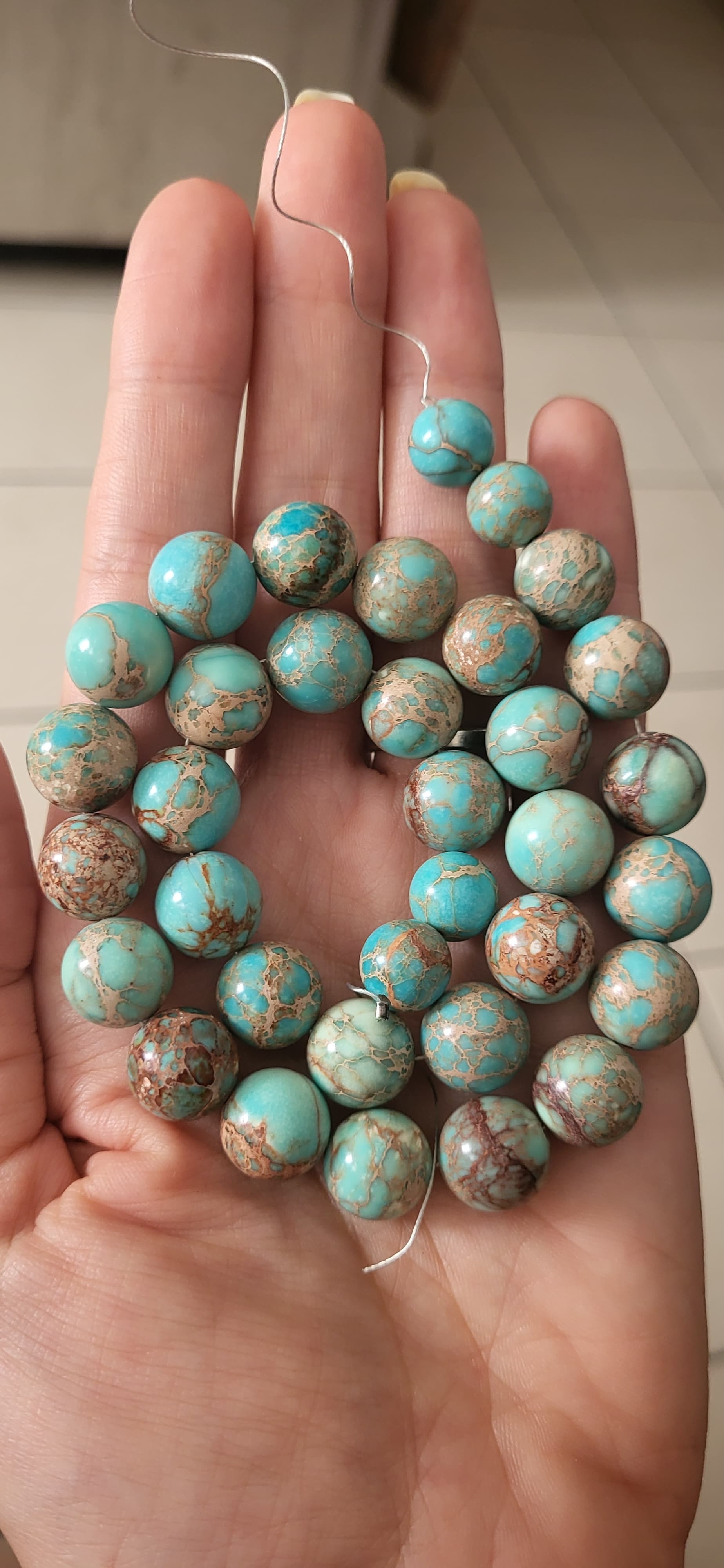 I thought so too, but the beads in my necklace not dyed (this color is 100% natural) and the matrix is not as uniformly light as variscite. Actually, this puzzled me)…