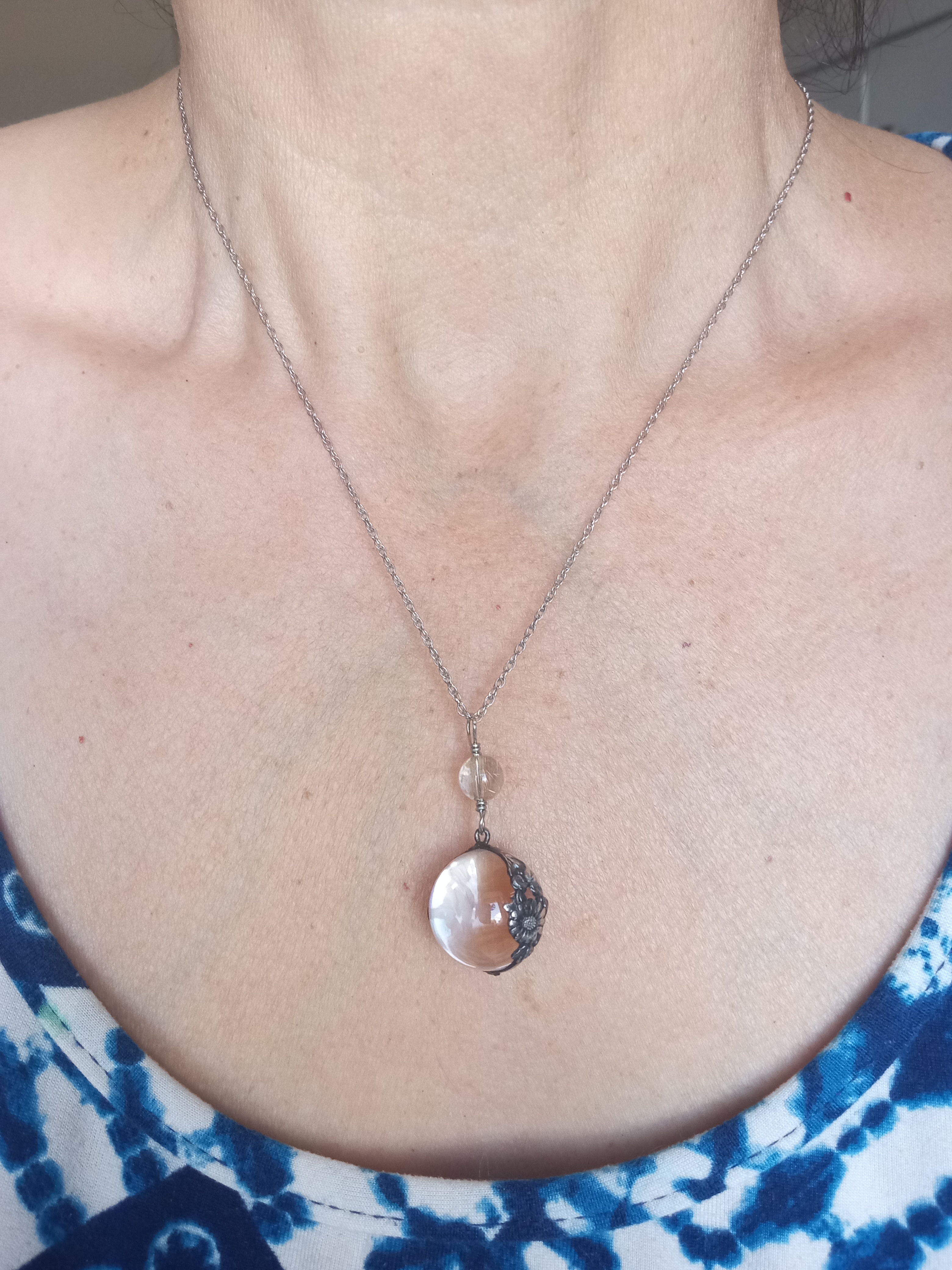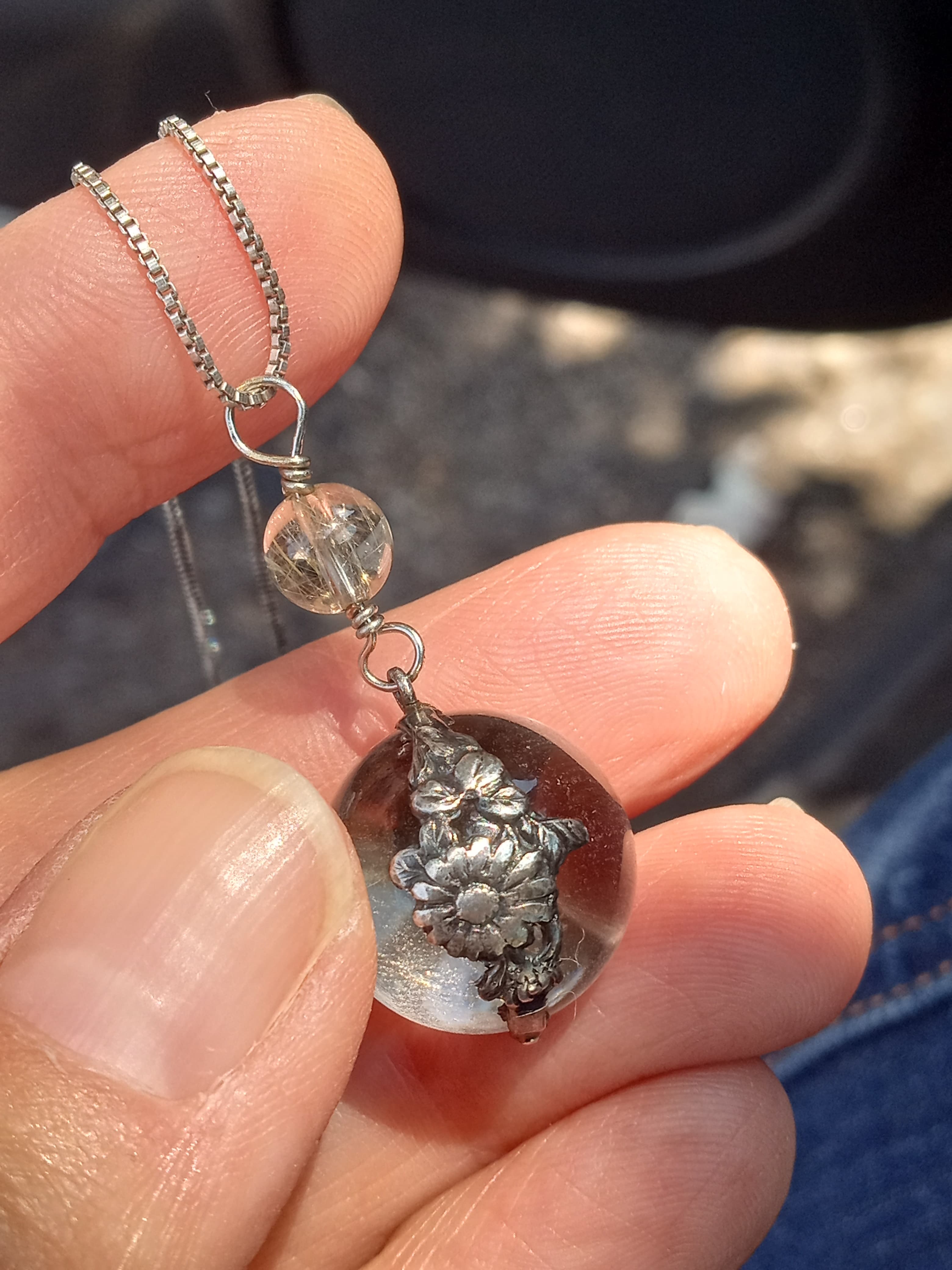 I liberated it from the strand and created a pendant with another rutilated quartz bead.