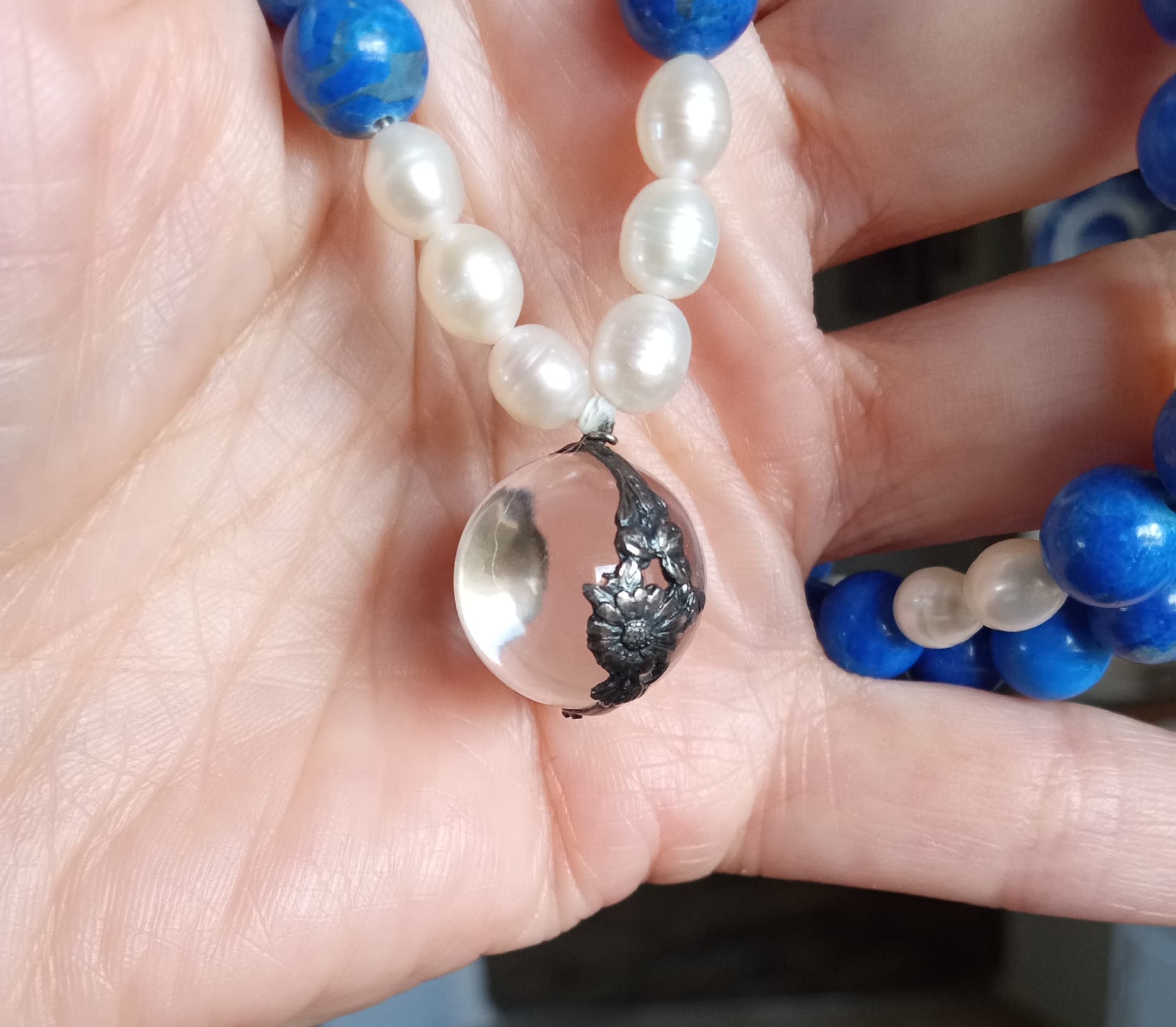 So imagine my surprise when I walked into a thrift store in Corrales NM, and found just one orb attached to a cheap pearl and dyed bead strand.