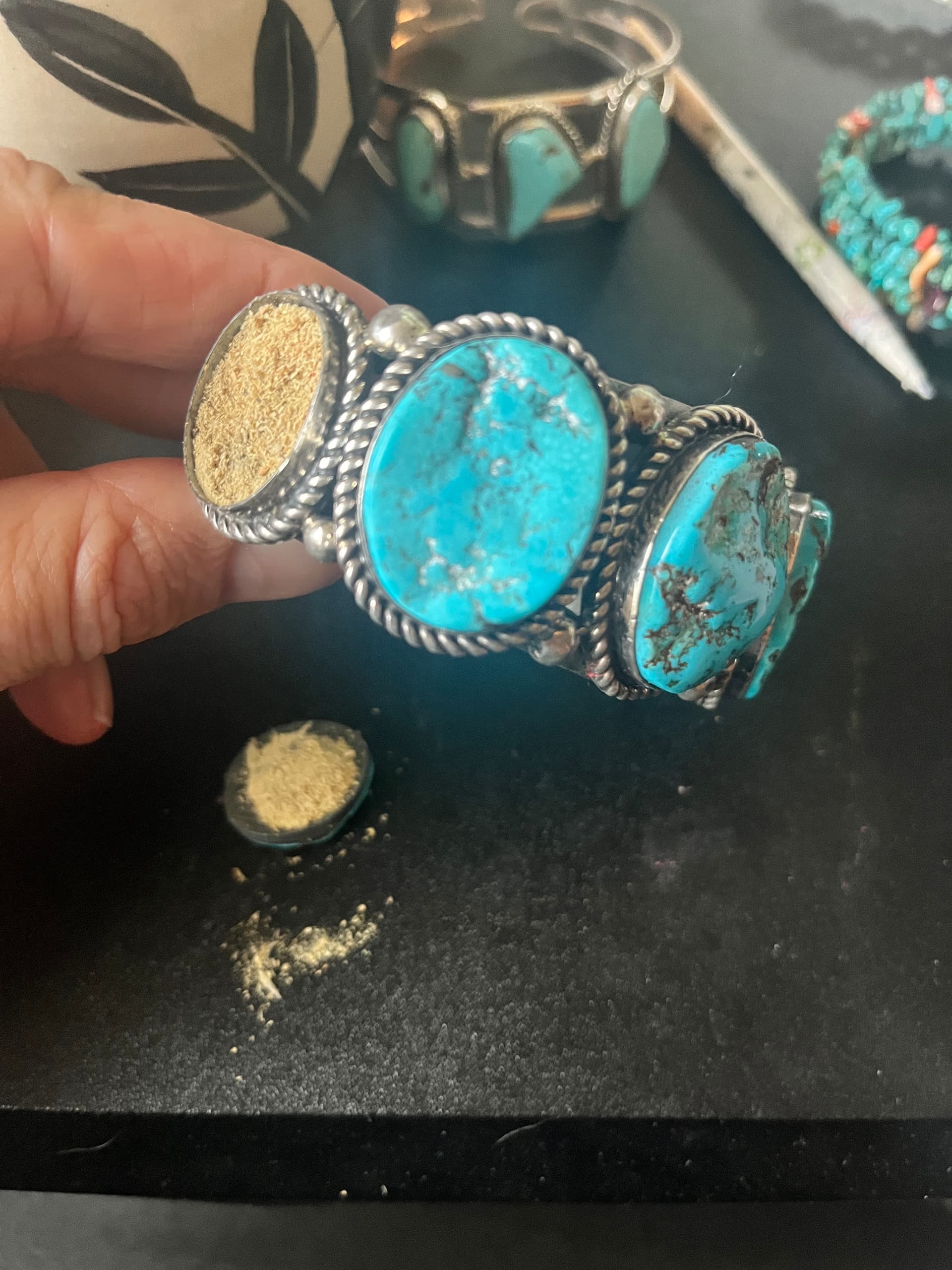 I have a question about NA jewelry. I am a real newbie. I bought both these bracelets from the NA gallery in Scottsdale. The first one is the smaller bracelet. 5 days after I bought it, a stone fell out. I called them and sent it back, they sent it to the artist to be fixed and sent it back to me. Great, right? Last week I went in there again and bought the bigger bracelet. 3 days later the stone fell out. Different artist, same gallery. What the heck? Do stones just fall out regularly? Is that a thing? I have super cheap “turquoise” jewelry that I have bought from China and nothing has fallen out. I contacted the gallery and I am going to send it back, but I am really disappointed. I definitely will not have it back to wear during the holidays. The gallery is really nice about it, and apologetic. I do not get them wet or treat them roughly. Also, I paid TOP dollar for these. What are people’s thoughts?