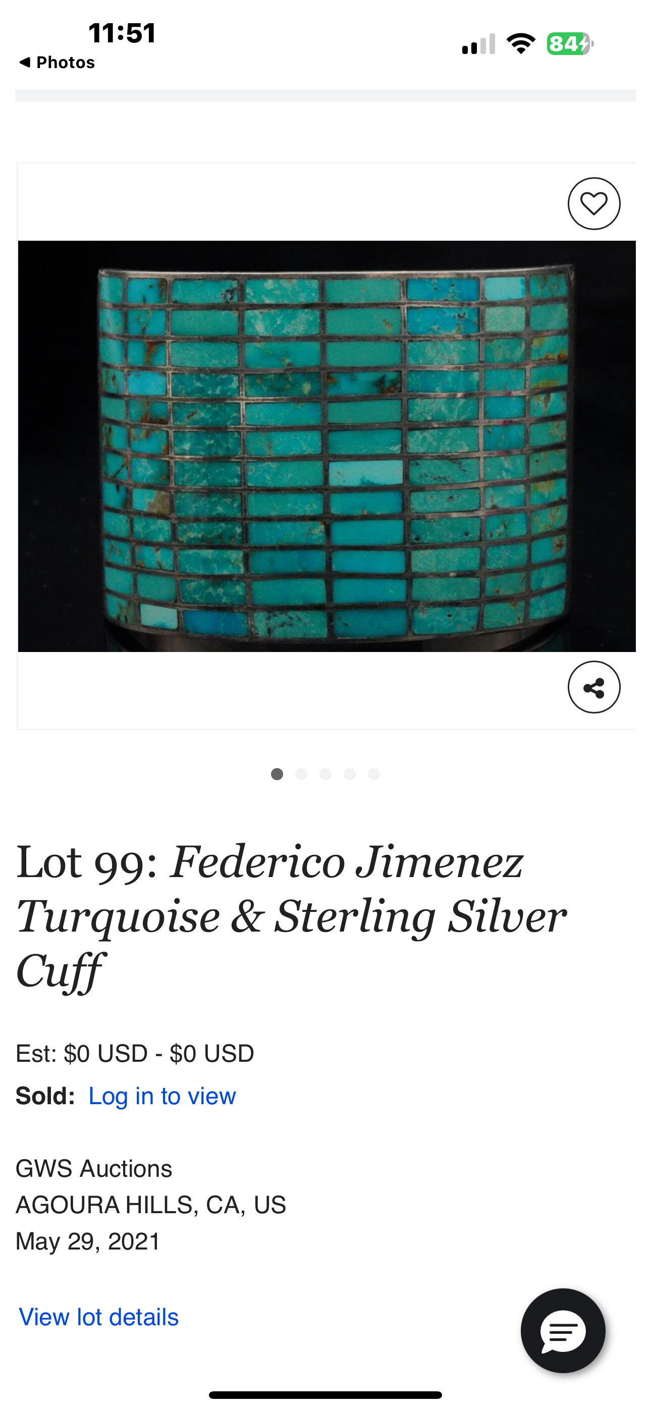 @nanc9354, I’m not really knowledgable about Jemenez jewelry, but I certainly appreciate his jewelry, especially this inlay cuff posted by @sjs. Your statement about the use of quality turquoise makes sense…In my opinion the turquoise in this cuff has that Blue Gemmish () look.