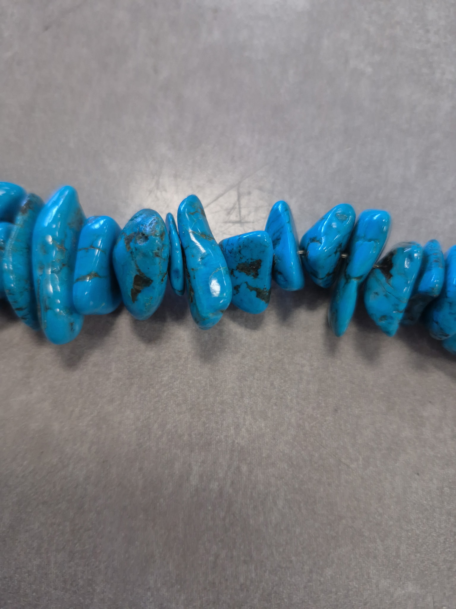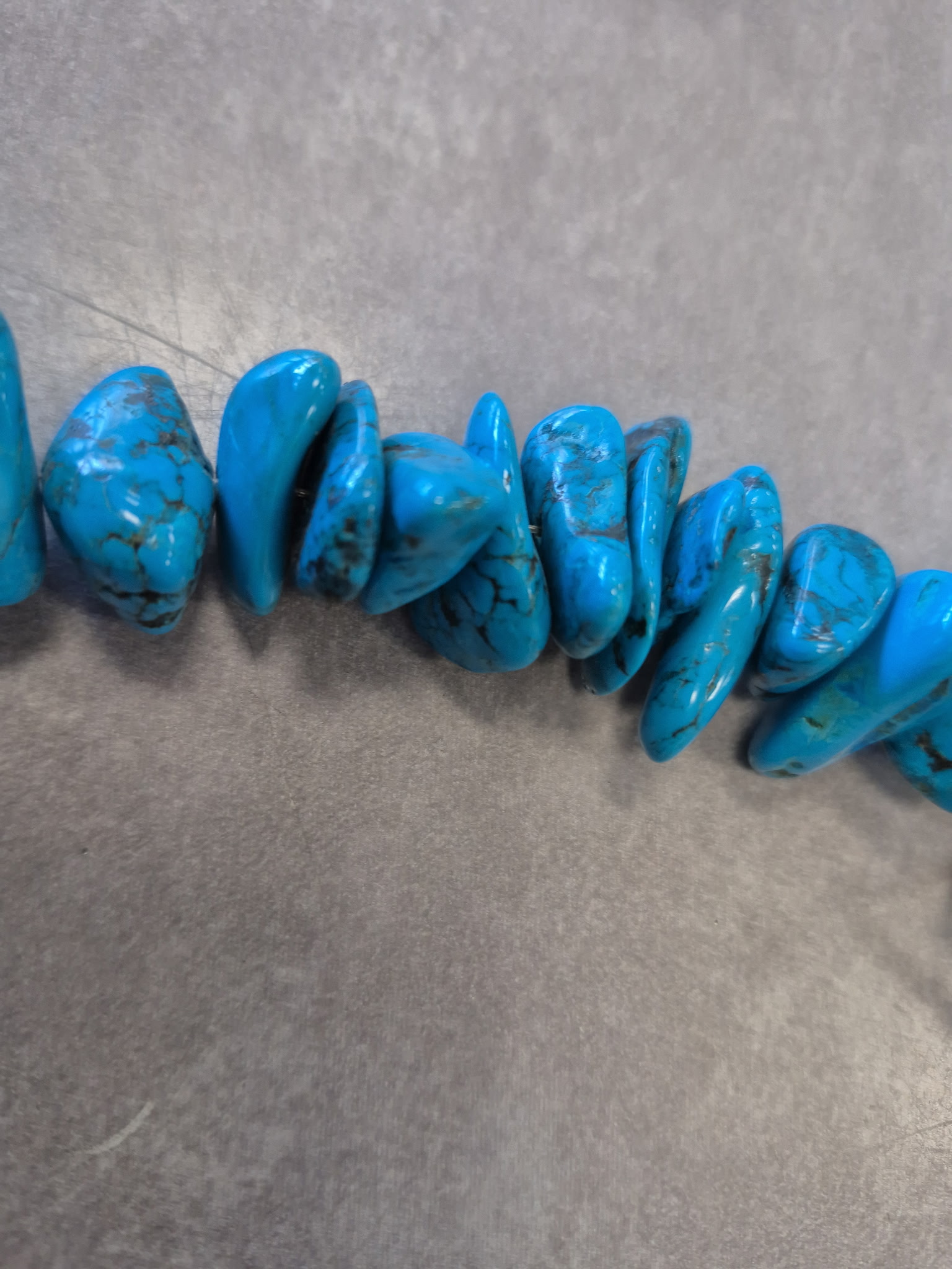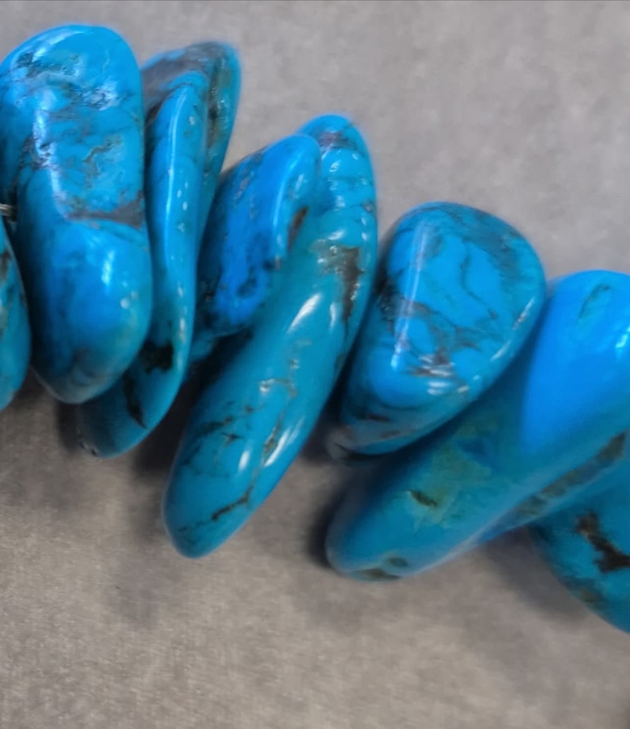 To me this doesn’t look like genuine turquoise. And to answer your original question, natural turquoise rarely comes in this exact shade of blue. When I see something this color my first thought is stabilized and color treated turquise, and my second thought is not turquoise.