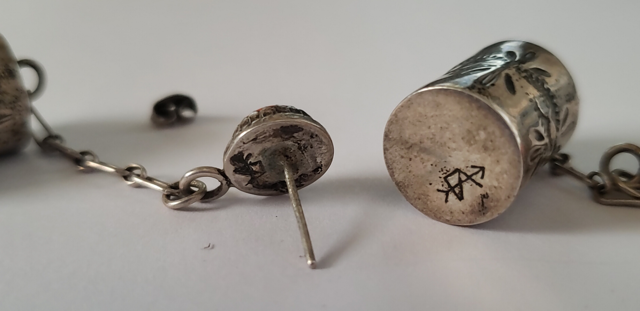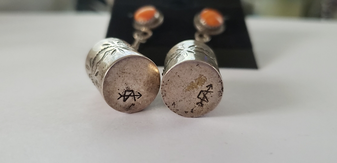 Yes I have inspected the stone and it is definitely spiny oyster…Do you think these are Navajo?? Because of stamp I do…Can u flip the symbol and make the arrow go the other way? Not sure which way is up But different initials I think