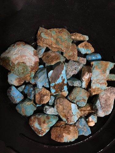 Hello , I have 1 lb of Rough Turquoise from the Kingman Mine. All pieces are unstabilized, hard , not chalky. I’ve partnered with a friend to sell these pieces. I’m trying to gather information prior to listing it. Hoping to maximize the outcome of the sale. What information are buyers looking for in a listing? I.e. Specs. I’m fairly certain this is good quality turquoise. Do you agree? What is the going price for similar lots today? And what would be fair price if I wanted to add a reserve price to an eBay auction? Final question: Could you recommend any other avenues ,besides eBay & this forum (trading & Selling), where I might be able to sell this? Thanks & kindest regards to all