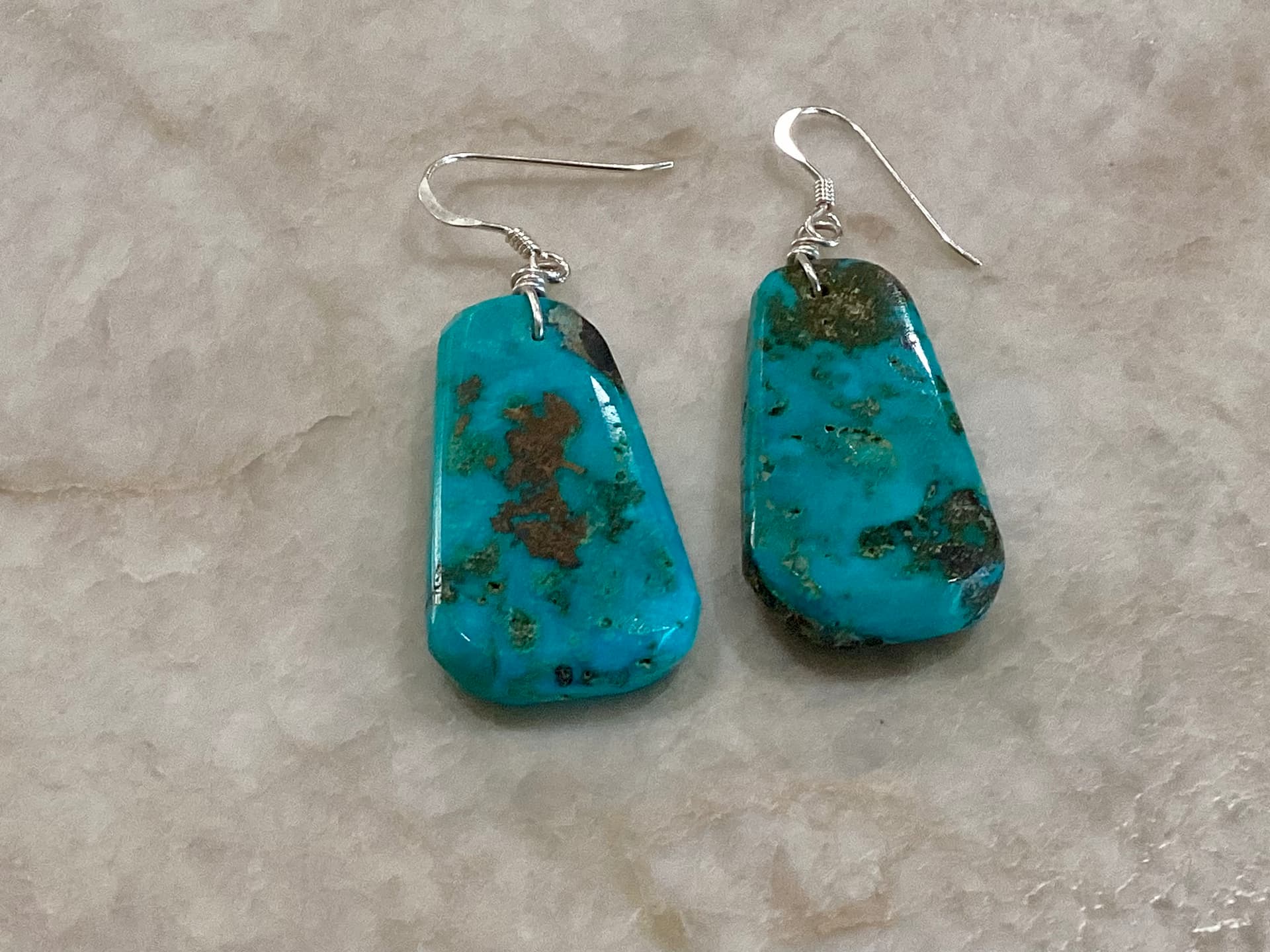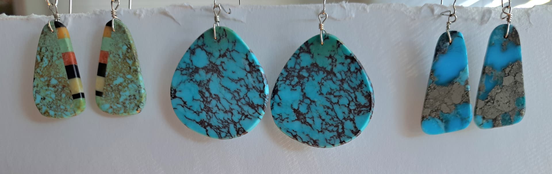 I’m impressed with all the wonderful slab earrings you all have posted. I bought my first pair from Ray Lovado at Santa Fe Market this year. My husband actually complimented my earrings when I wore them a couple days ago. Ithink this is the first time he’s said anything about my earrings😄. These are natural Blue Gem:
