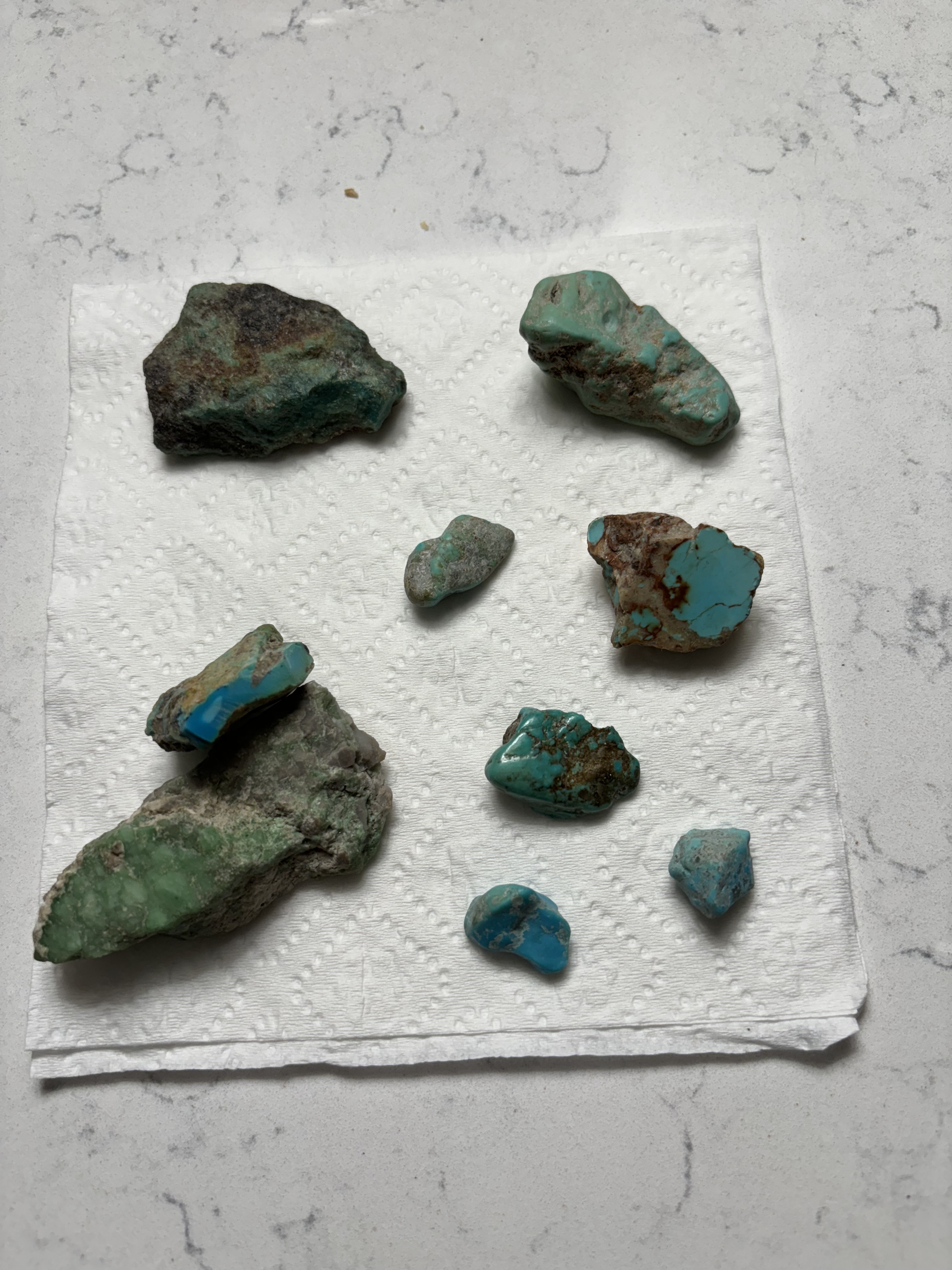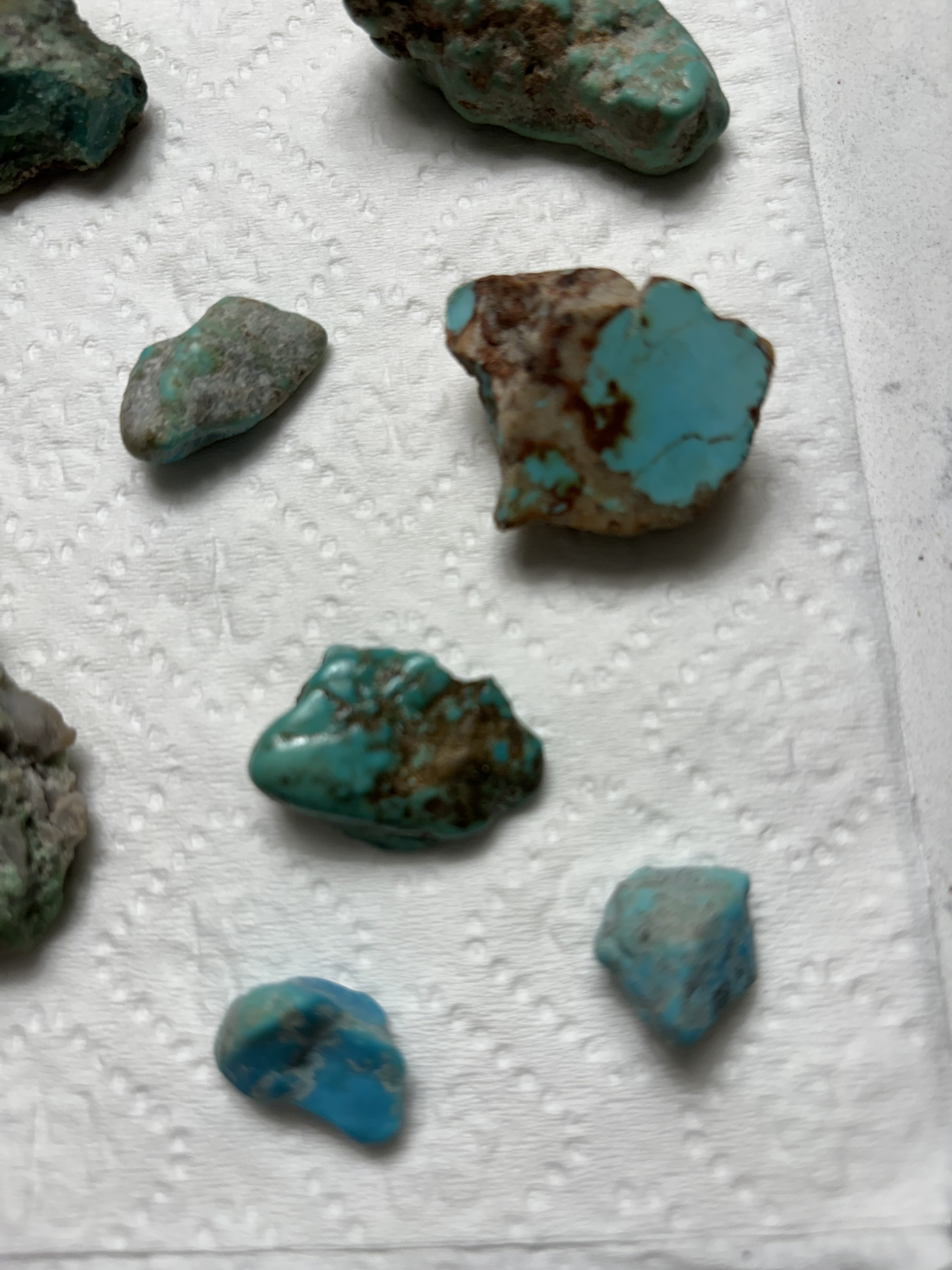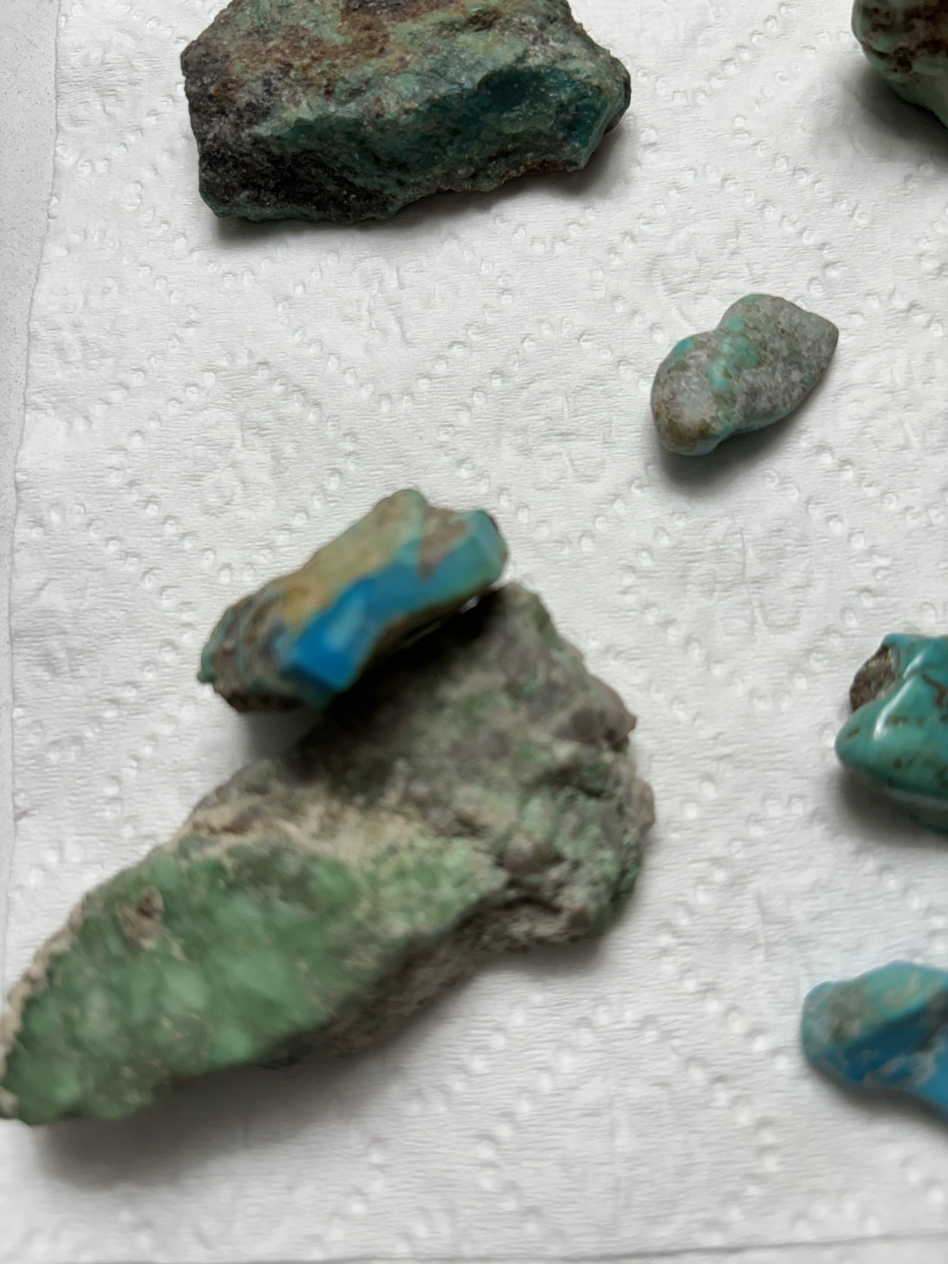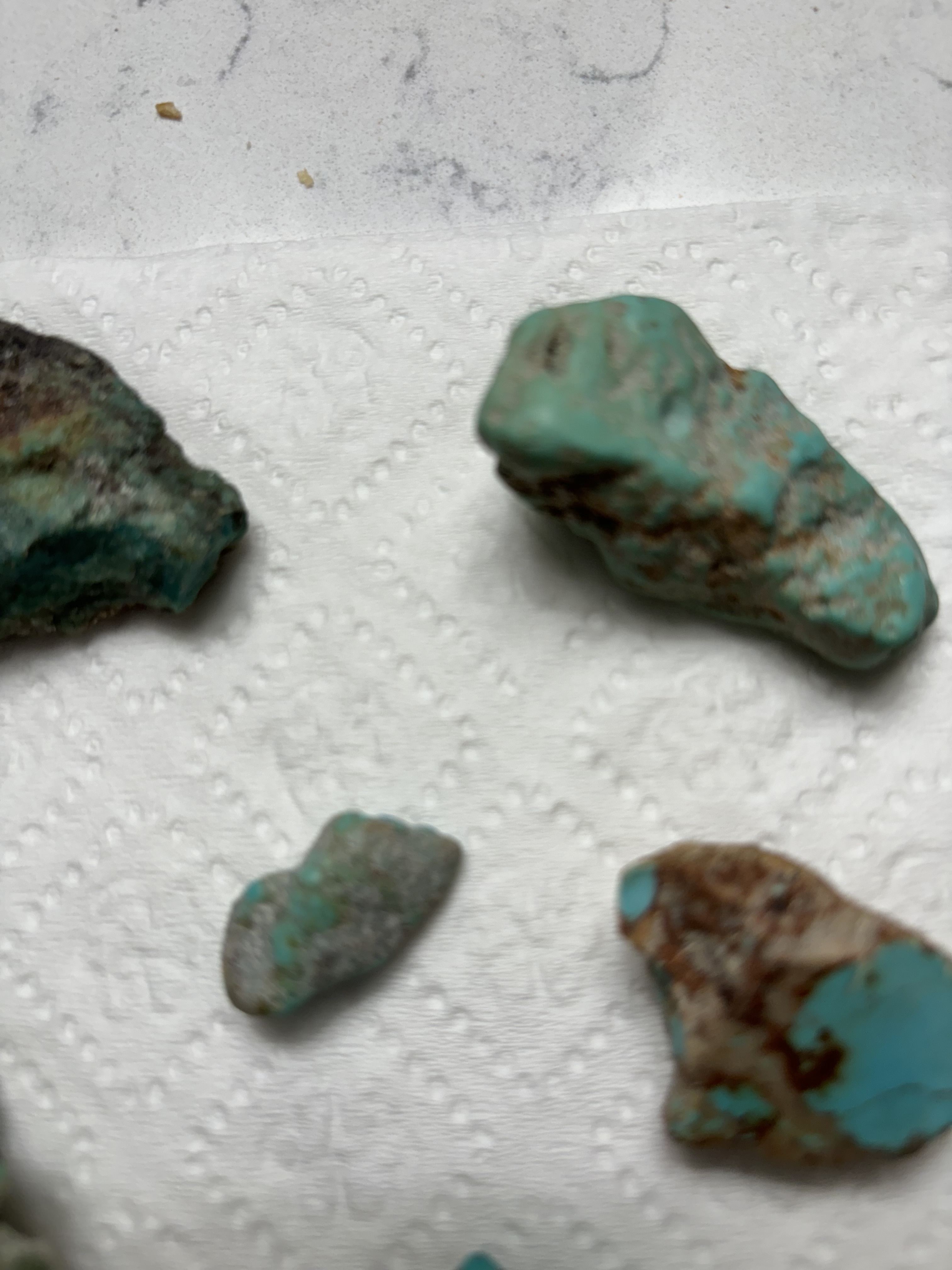I bought these pieces at a yard sale. They were in the bottom of a vase. The seller said her husband picked them up out West. Any thoughts on the type of turquoise or if they are real or not??? I don’t have a lot of info on them.