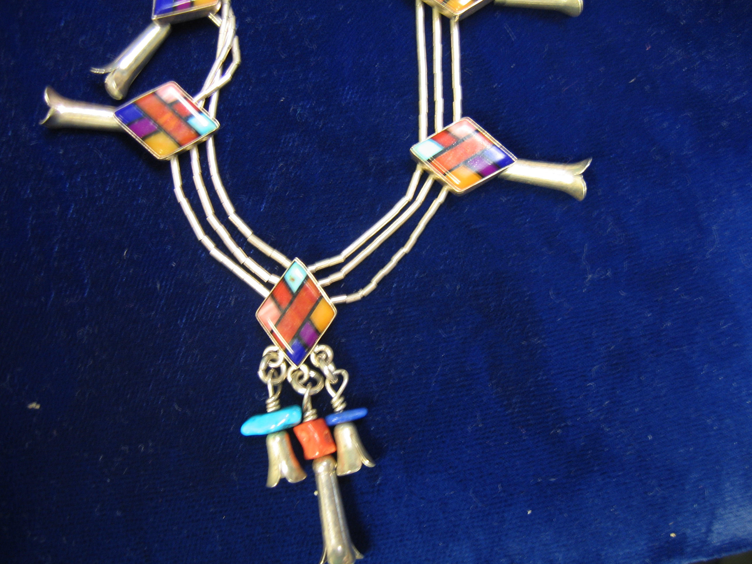 More than likely yes. A pic of the back would help. The uniformity of the petals on the squash flowers, the faux stones in the inlay, plus the use of liquid silver = commercial southwestern jewelry