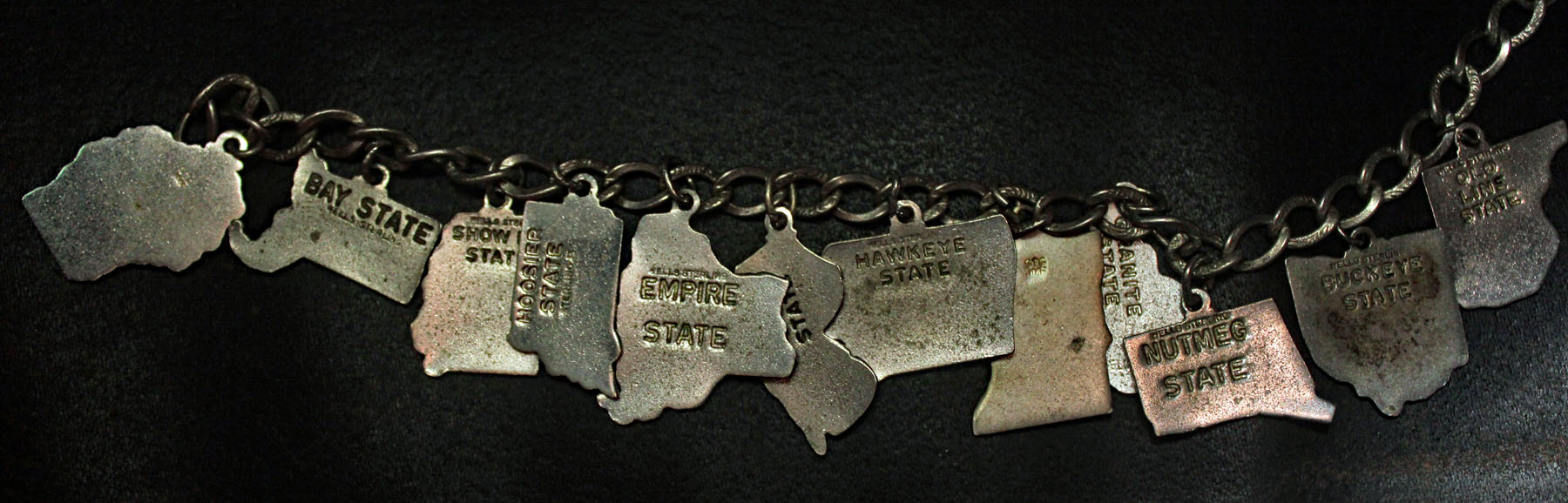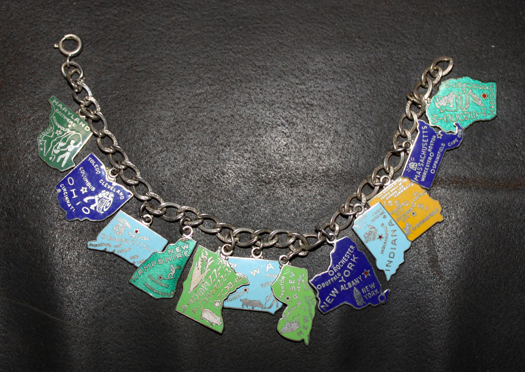 My husband started one for me when the kids were born and I treasure it. I’m a member of Sisters on the Fly, and we did a charm trail in Pendleton when I hosted an event years ago, and I made a necklace out of mine, and added vintage state charms like yours too, it’s quirky, but I like it for the memories.
