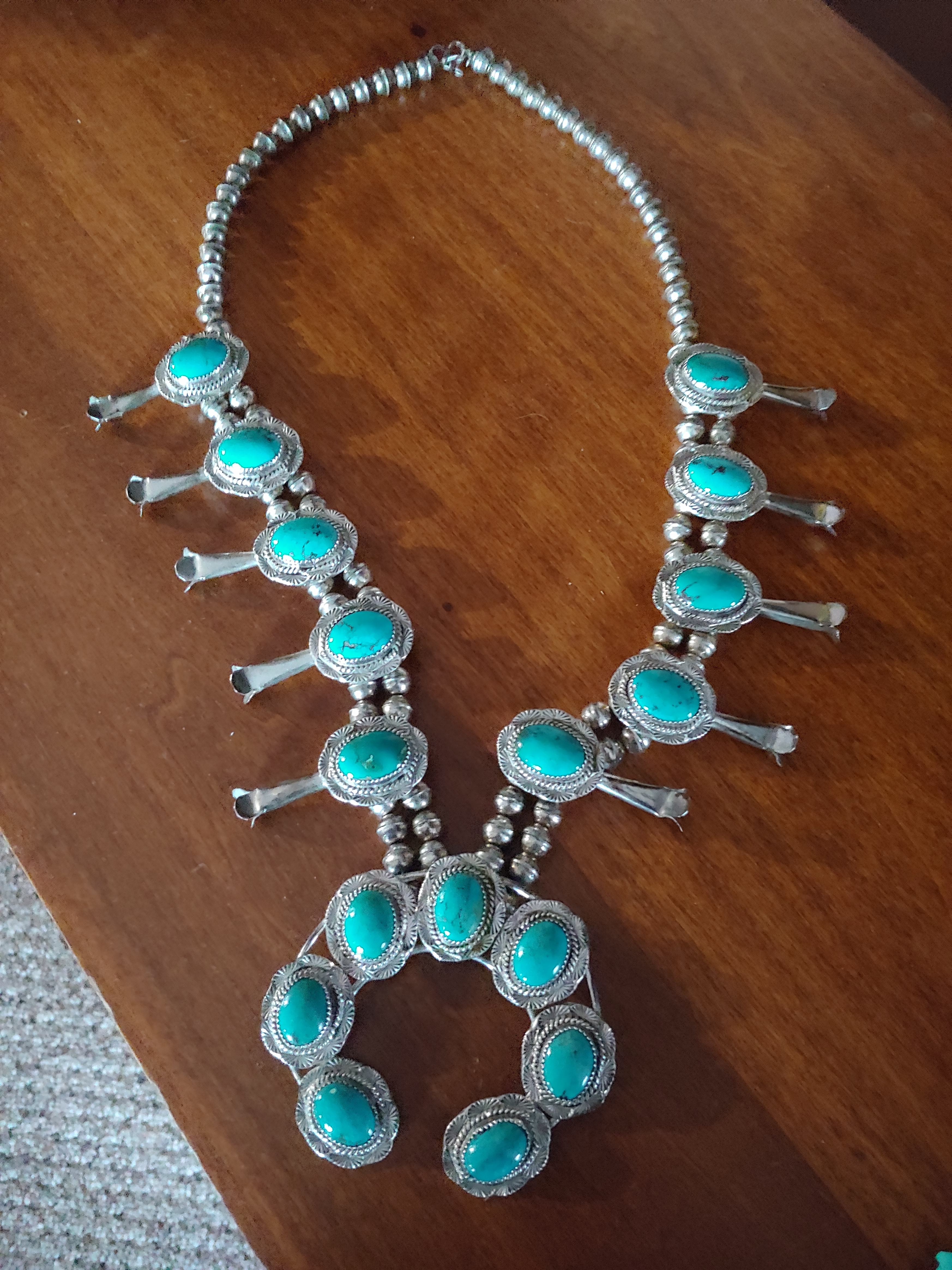 I have a very large squash blosson silver and turquoise necklass that has a snail for a signature. It was purchased 18 to 22+ years ago in Old Mesilla NM Does anyone know anything about t