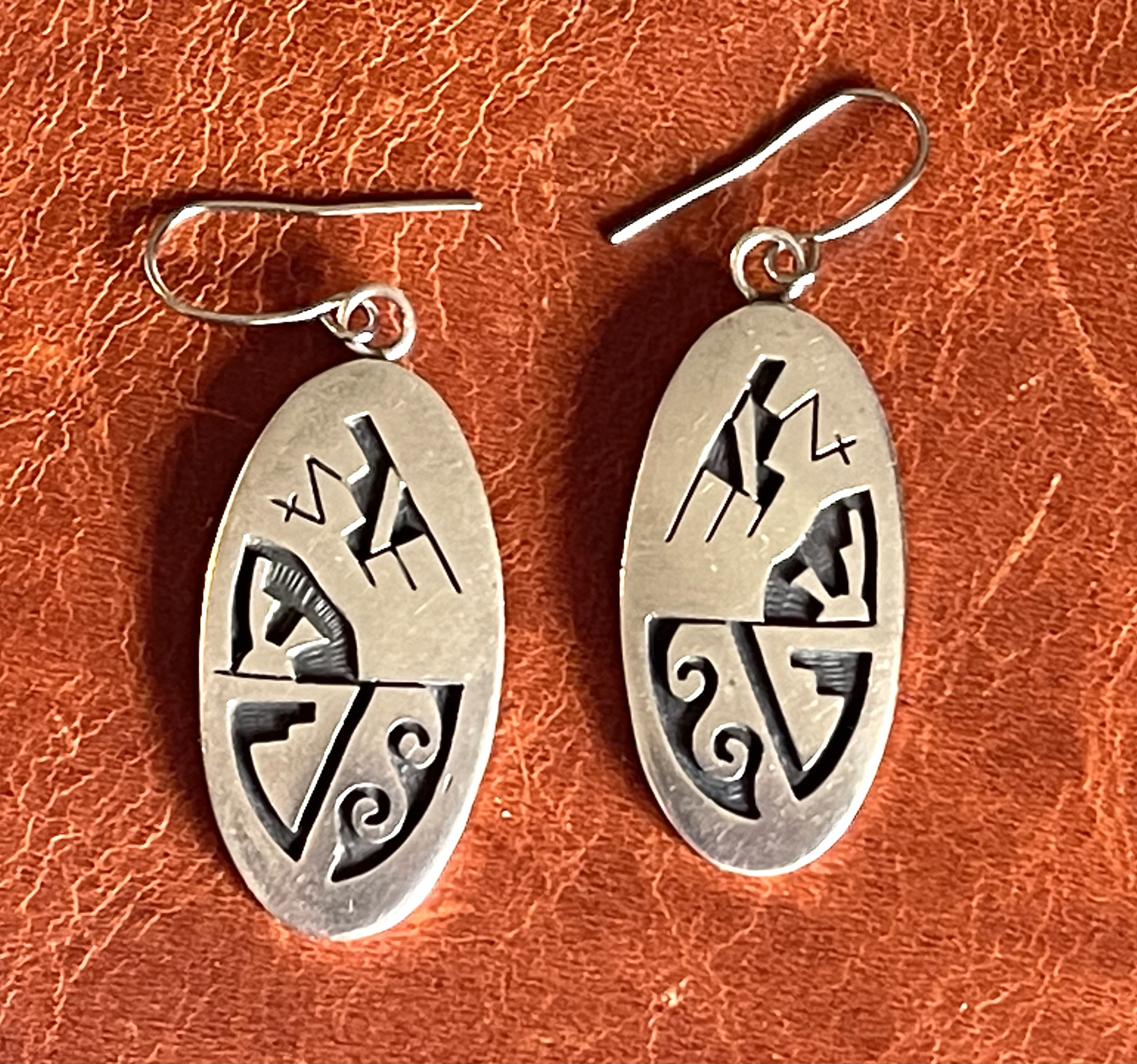 I recently bought this pair of earrings — later discovering that they are by Hopi artist Gerald (Honwytewa) Lomaventema thanks to Hougart 4th.