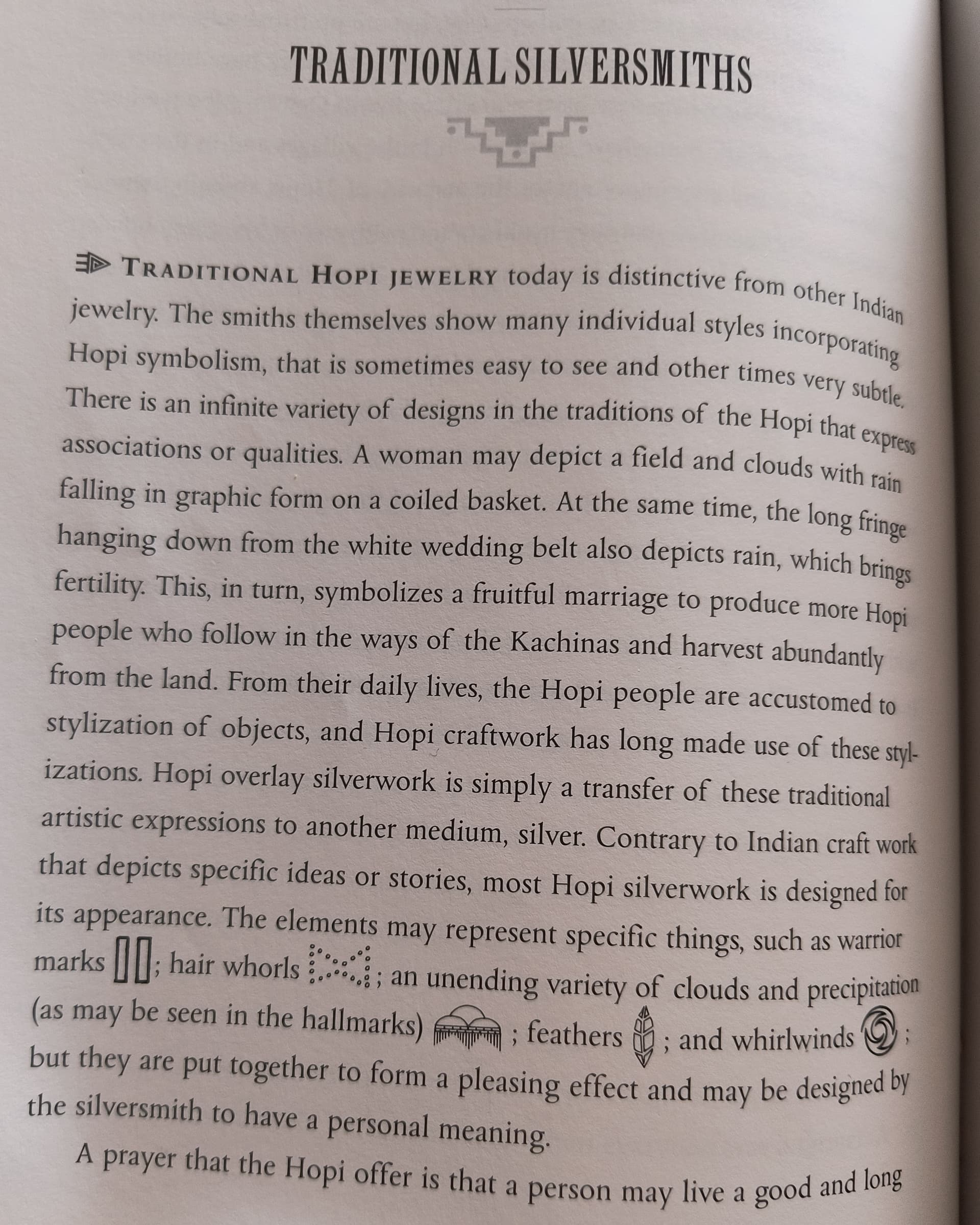 I really can’t help you with the symbolism, except I do agree they look like rain clouds with lightning. I thought I would post a pic of the page in my Hopi silver book that talks about Hopi symbolism. Sorry if it’s a little hard to read.