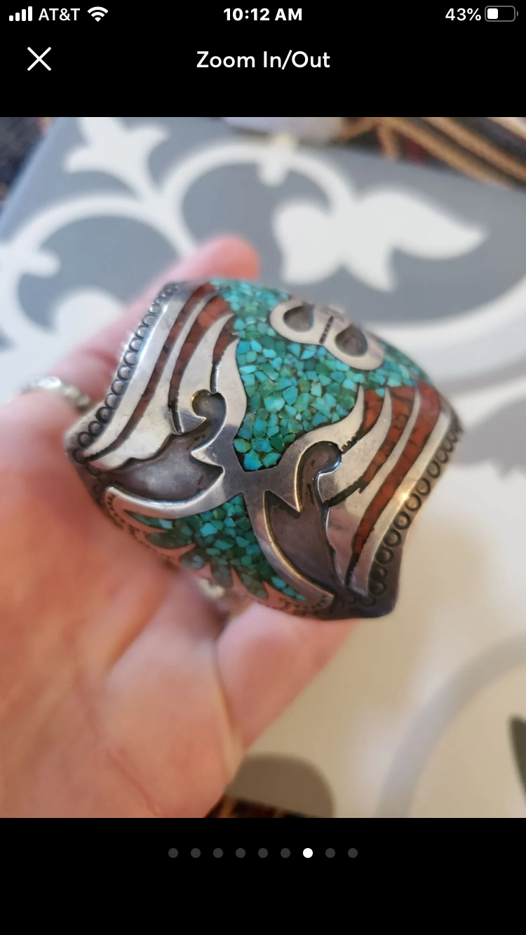 Watch for abraded inlay or color loss in the inlay. This looks worse on coral than on turquoise. It will look like whitish patches on top of the inlay areas. Either someone rubbed it with something bad or exposed it to paste silver polish. You can’t fix this at home. I’m not even sure if a jewelry repair would handle it.