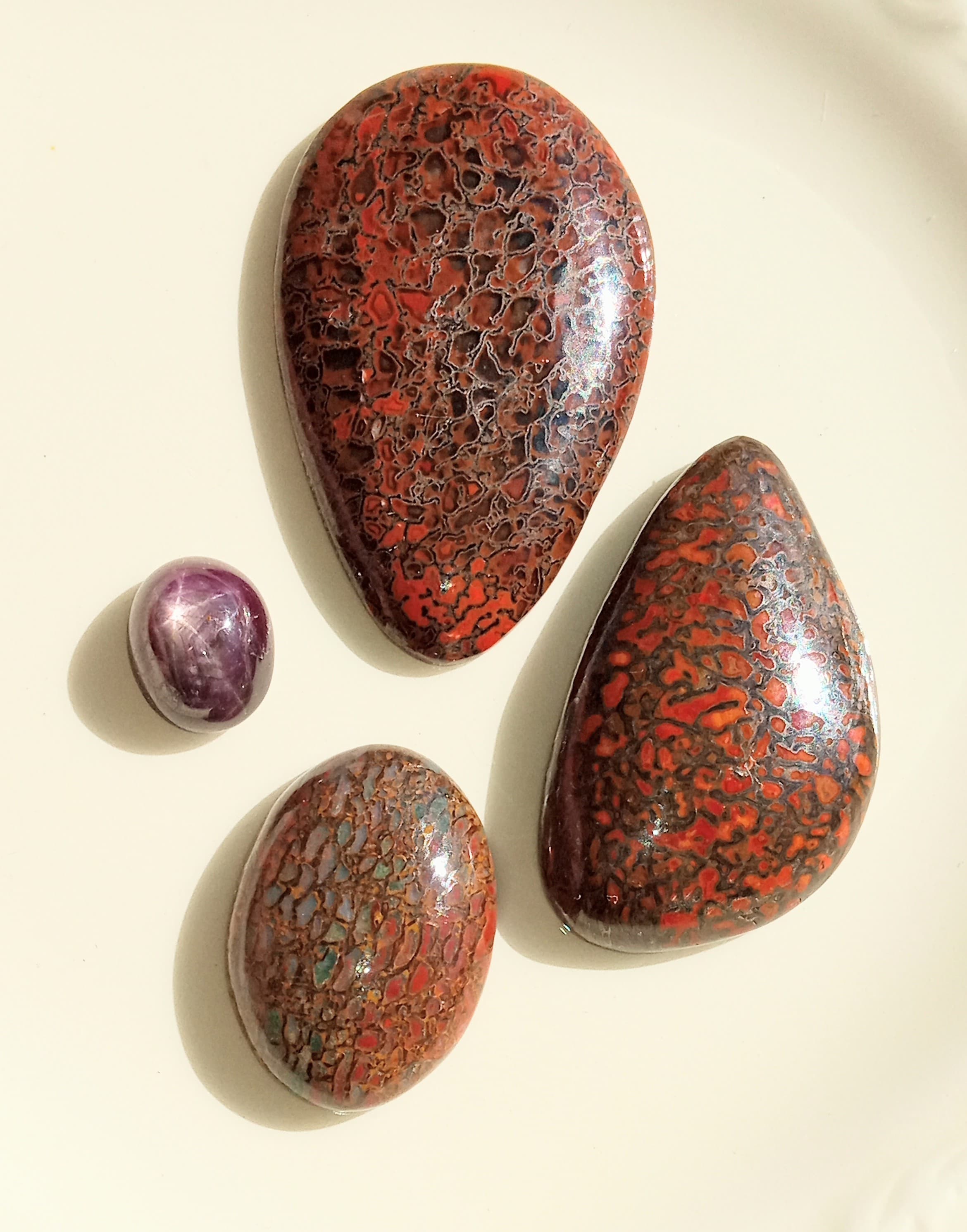 Nice haul @Stracci!! Lucky you! I especially love the No 8…just yummy! And the fossilized dino bone cabs are fabulous. Do you mind showing the backing on the No. 8, it looks pretty thick (?). Is that typical with older No. 8. If you have a plan for it please update us .