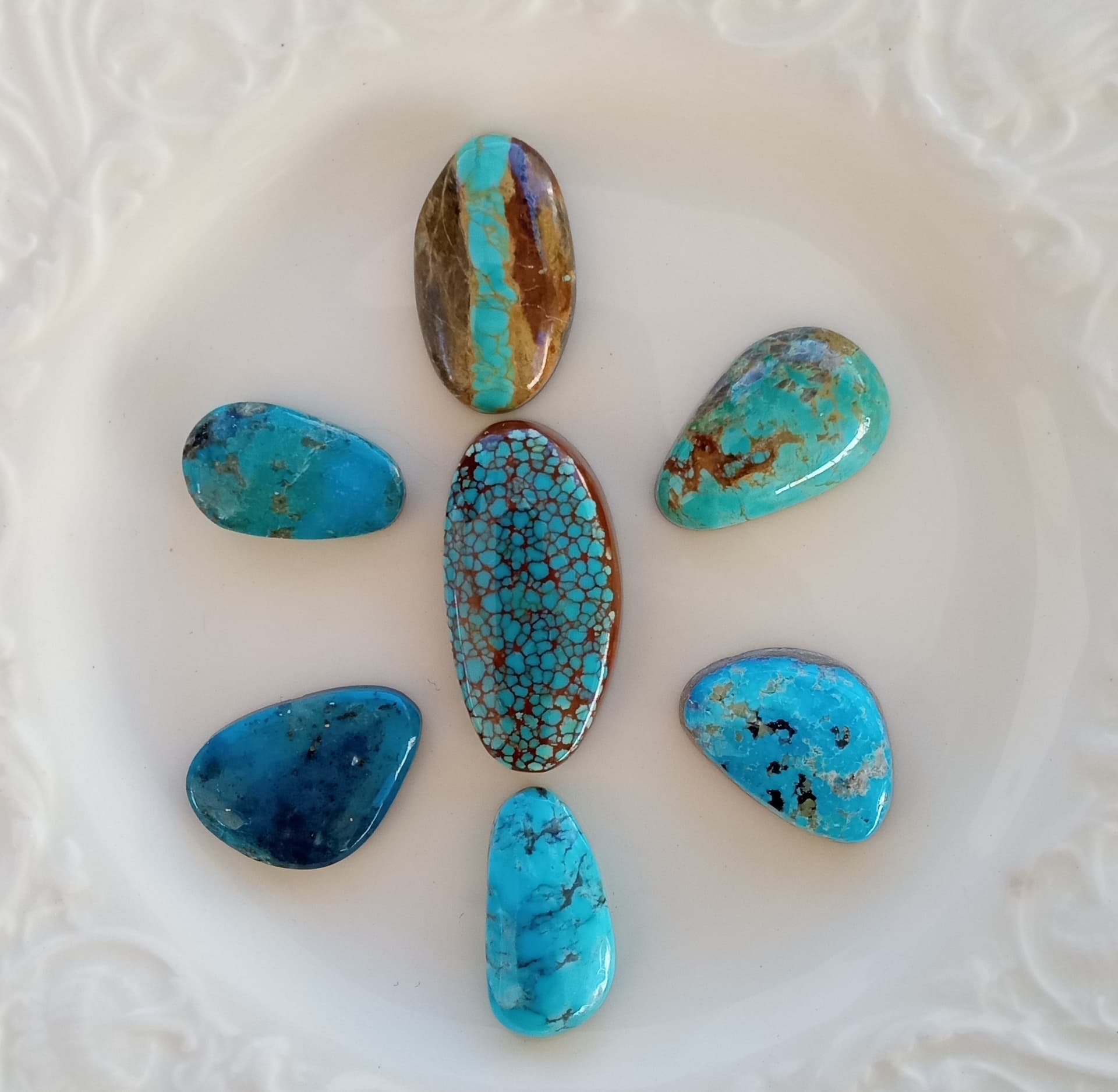 Two from Tyrone, two from Kingman, two Morenci and the center stone is a really nice #8.
