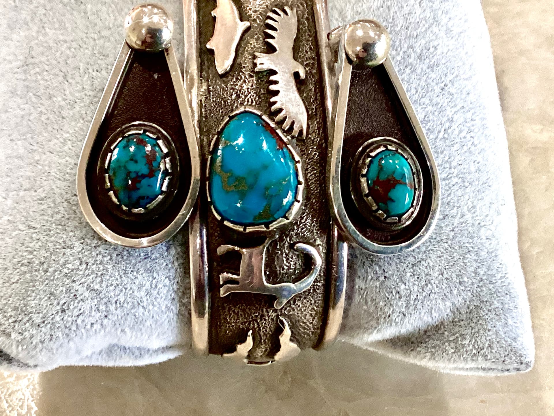And, per your request here is some of the Lost Vein Turquoise. This first photo is a cuff and earrings I had made with my cabs: