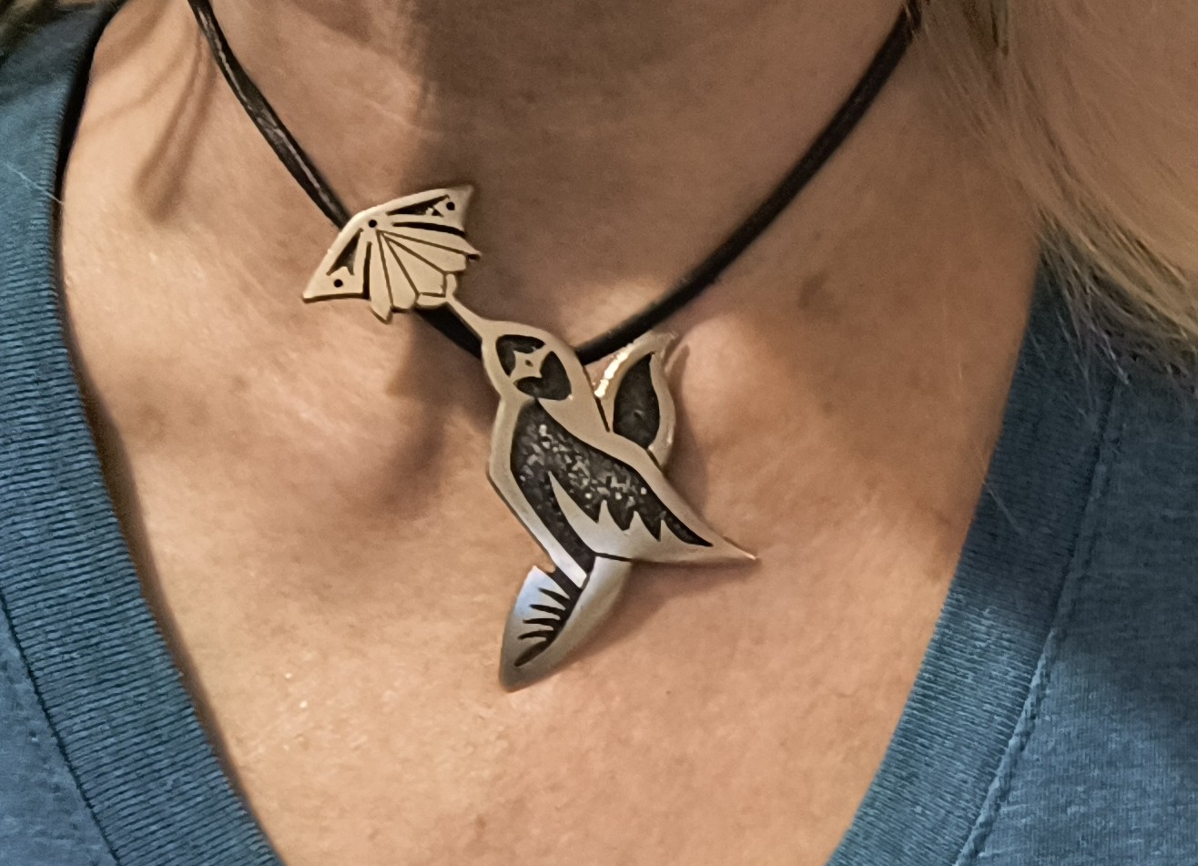 I inherited this lovely Duane Maktima hummingbird pin from my mom that I use as a pendant (I never wear pins). It has no bail, so I run a leather cord through the bar. Unfortunately the clasp is loose, so for fear of losing it, I practically never wear it. I tried to squeeze the clasp with a pliers to no avail, so I resorted to (gasp) super-gluing it shut. I don’t want to have a bail added, because I really like the way it hangs on the cord.
