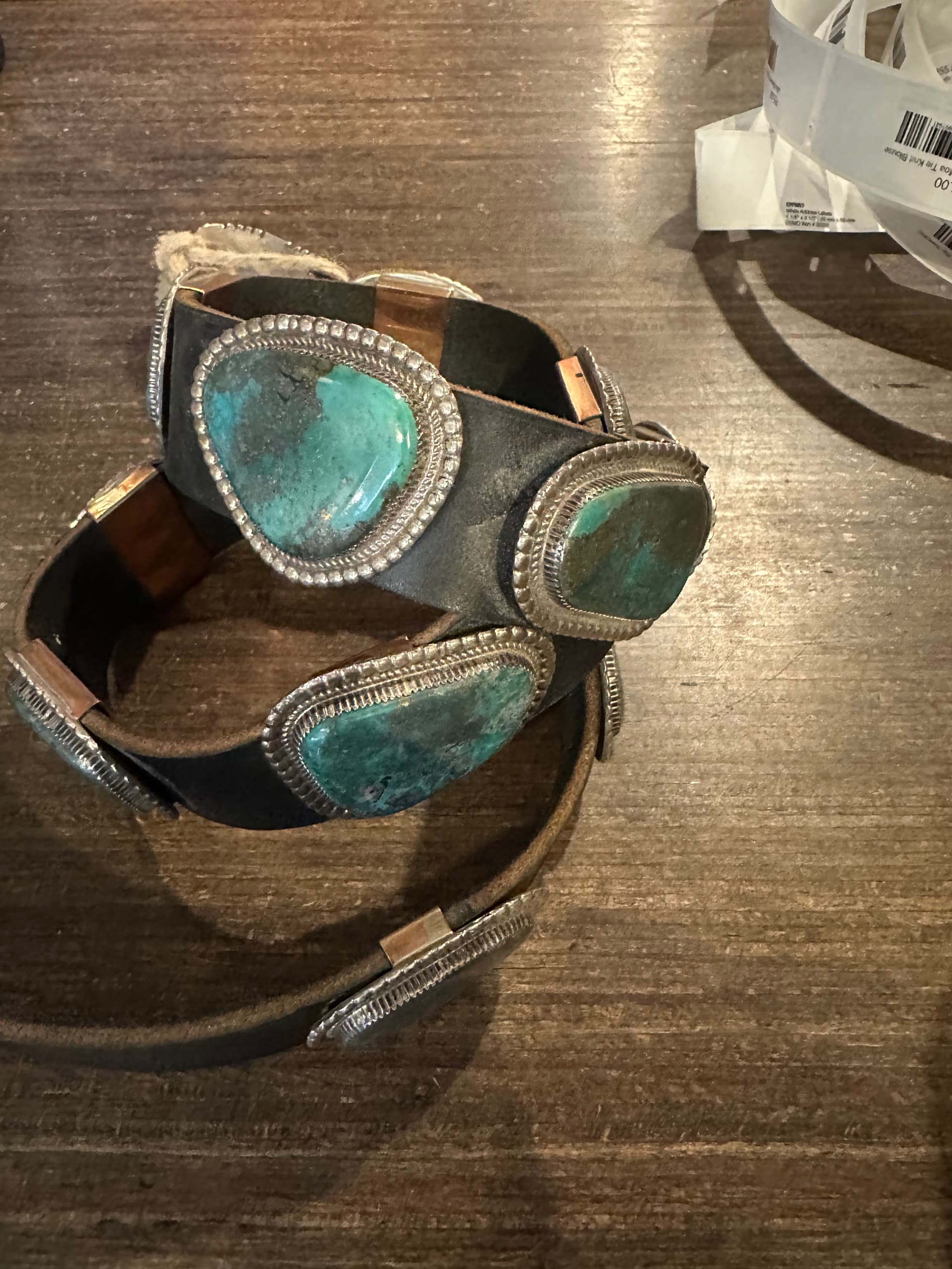 Found this belt at a vintage store in Canada, they have a lot of old stuff. Thoughts on the stones? Have a lot of pyrite. Sterling silver, stamped, silverwork isn’t anything fancy. Signed B from running bear workshop. What do you think it is worth? Trying to decide if I should buy it.