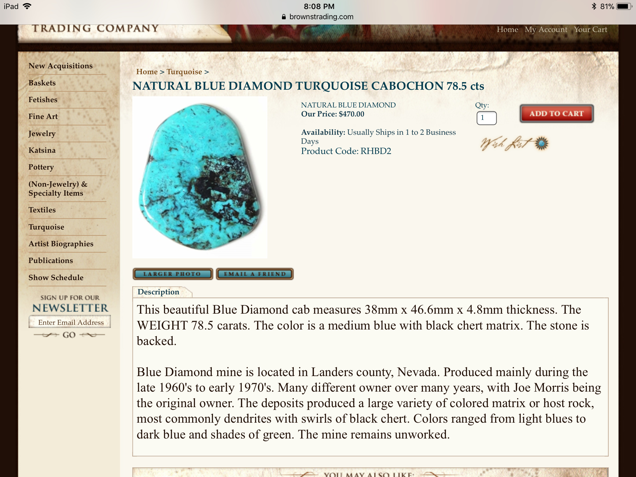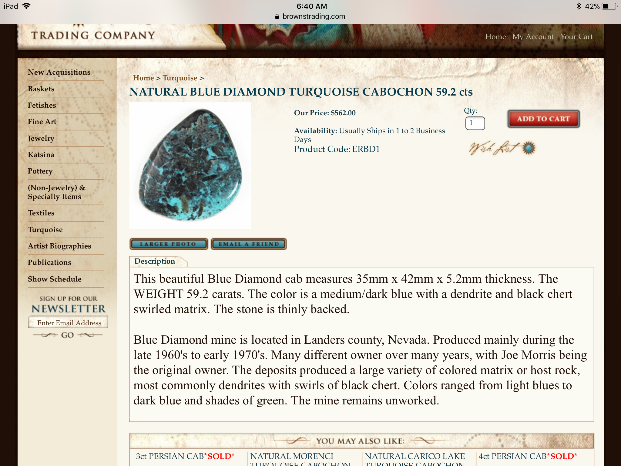 So, they have this piece right under $1 a carat. These guys dealt with tons of Morenci and will have a good feel for turquoise prices.