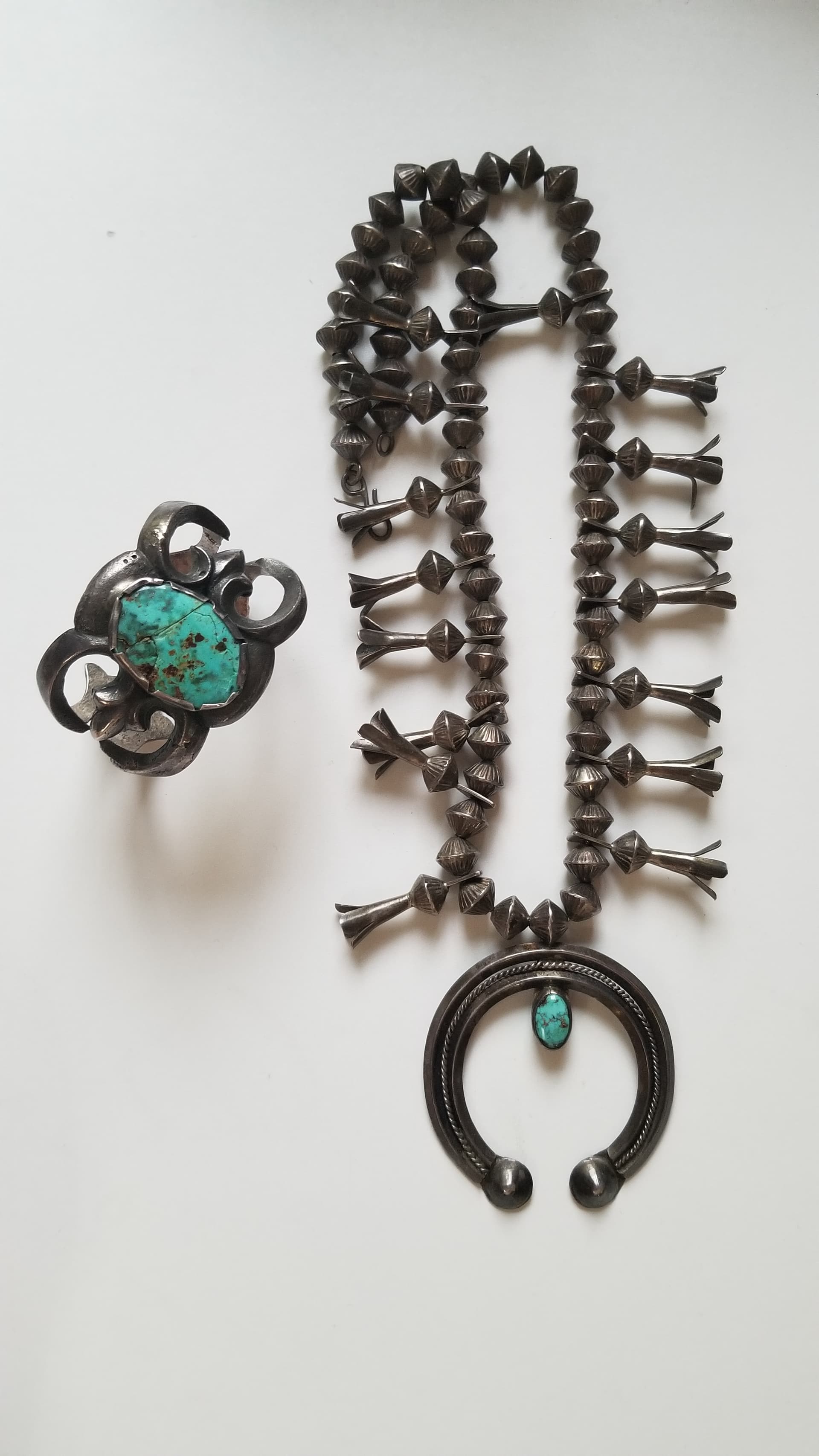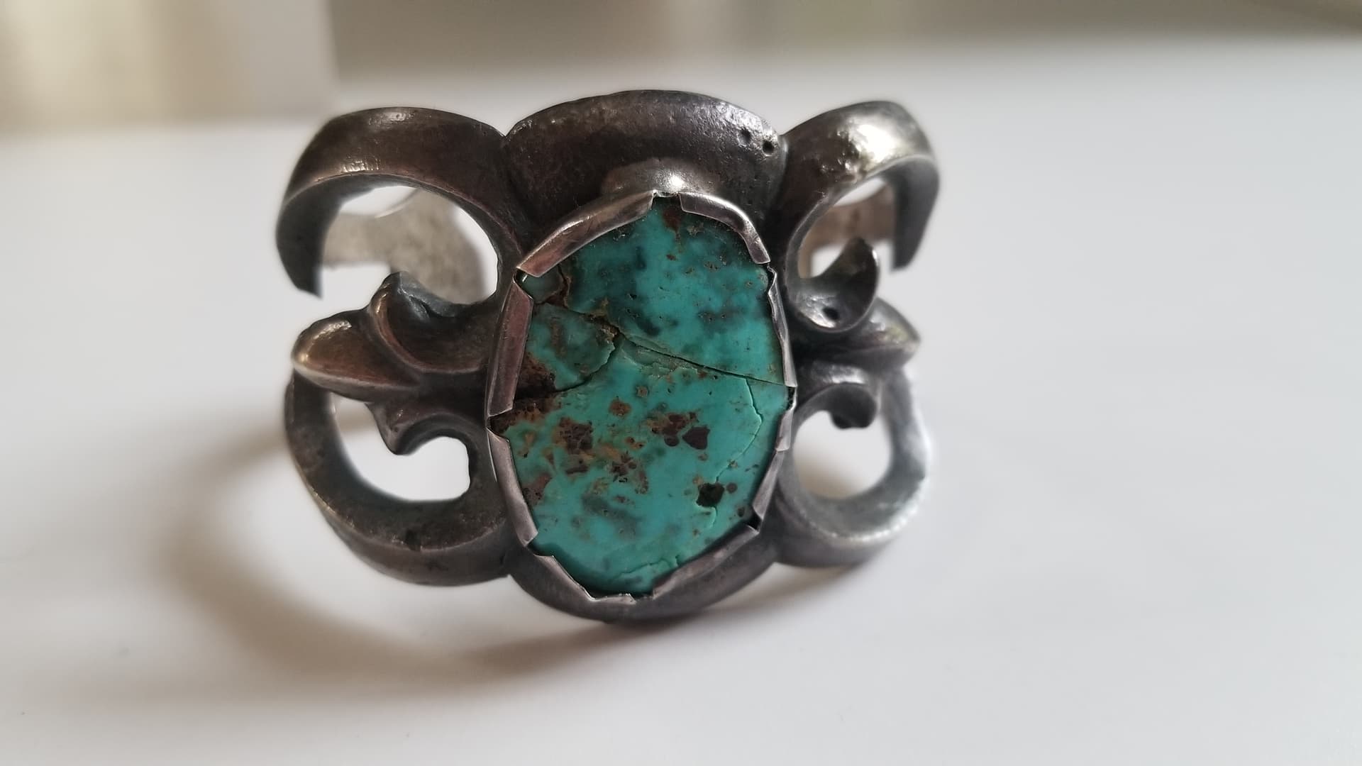 Hi everyone! Thanks for this amazing forum, I’m learning so much already! Thought I would share and ask… I inherited two beautiful pieces from my Grandmother, I believe she aquired them in the 60’s, but I’m not certain. There are no hallmarks. Not sure what type of turquiose it is. The stone on the bracelet is badly cracked. Necklace appears to be in better condition. Any information about dates/value/turquiose type is greatly appreciated!