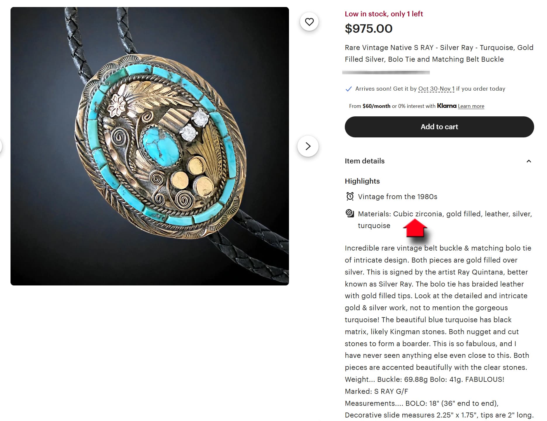 I took the pieces to a local jeweler I’ve used and trust. He examined it thoroughly and agreed that it is silver and gold filled, and the stones are cubic zirconia. He tested each one. Because of the uniqueness of the pieces, he asked to sell them on consignment in his jewelry store, which I agreed to do.