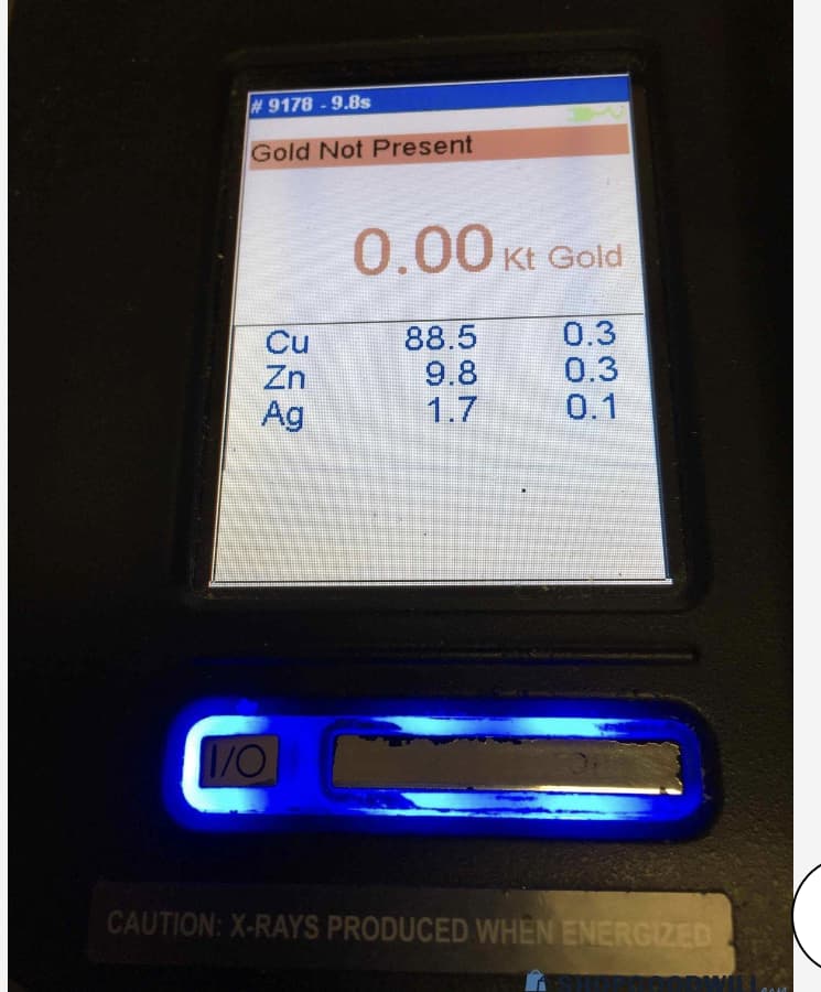 I see this often with online auction sites like shopgoodwill.com. They have these X-ray machines and attach pictures of their metal testing in their listings but they don’t guarantee anything. Most times the listings are vague because they are donations.