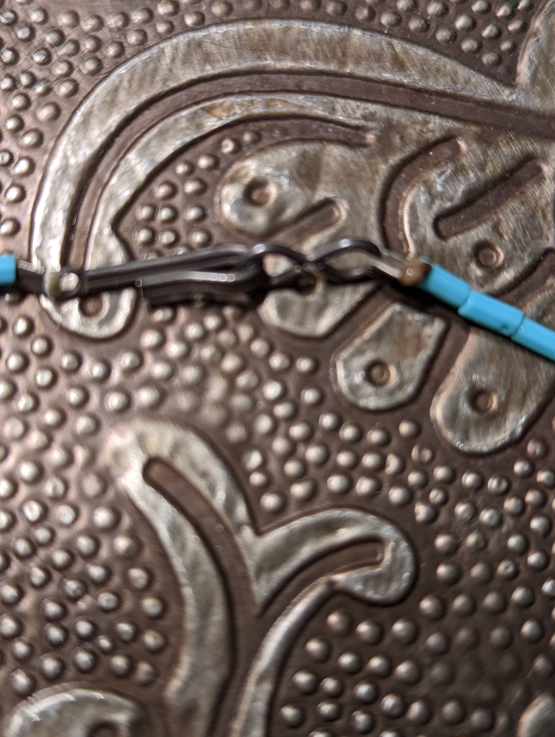 I wanted to thank everyone for all the thoughts, comments, and feedback. It has been an interesting discussion and as a novice, I have learned so much from all your comments. It was also a learning experience around buying online from large auction sites. It was misrepresented as a “Turquoise Native American necklace,” and while I doubt it was intentionally misleading, this has opened my eyes to so many factors to be aware of in the future. Thank you all for sharing your knowledge.
