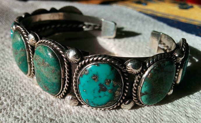A bracelet with different types of turquoise:
