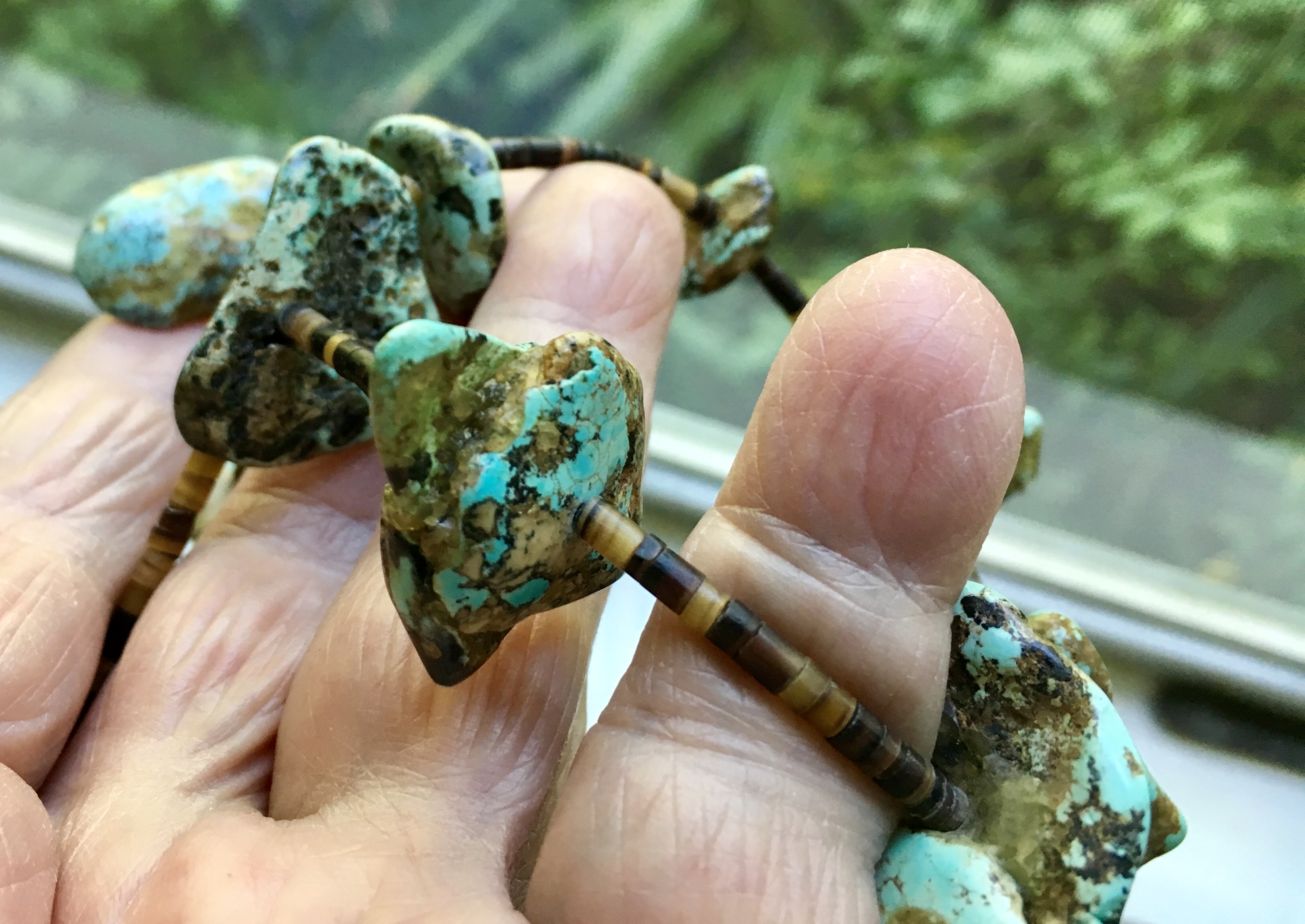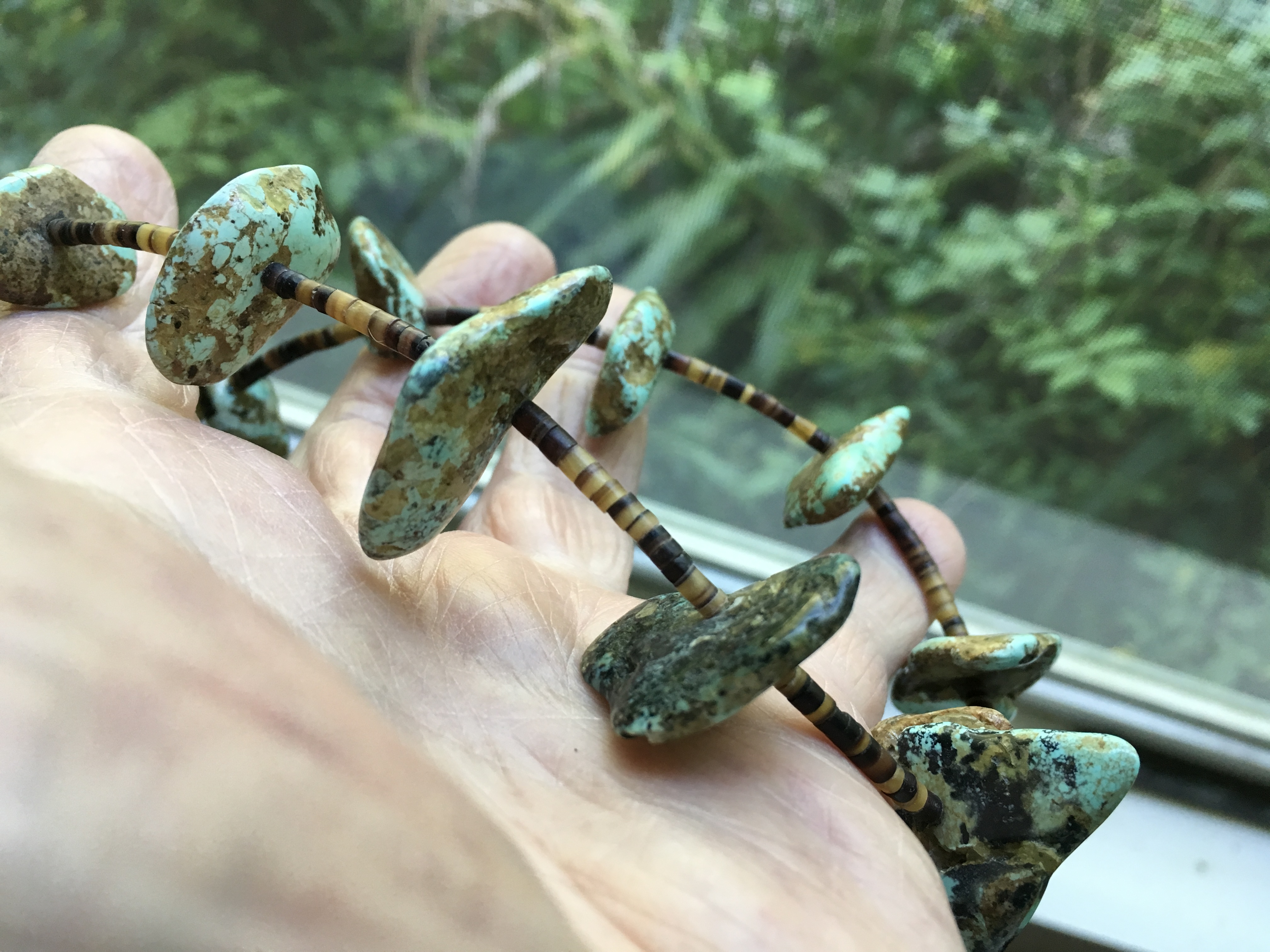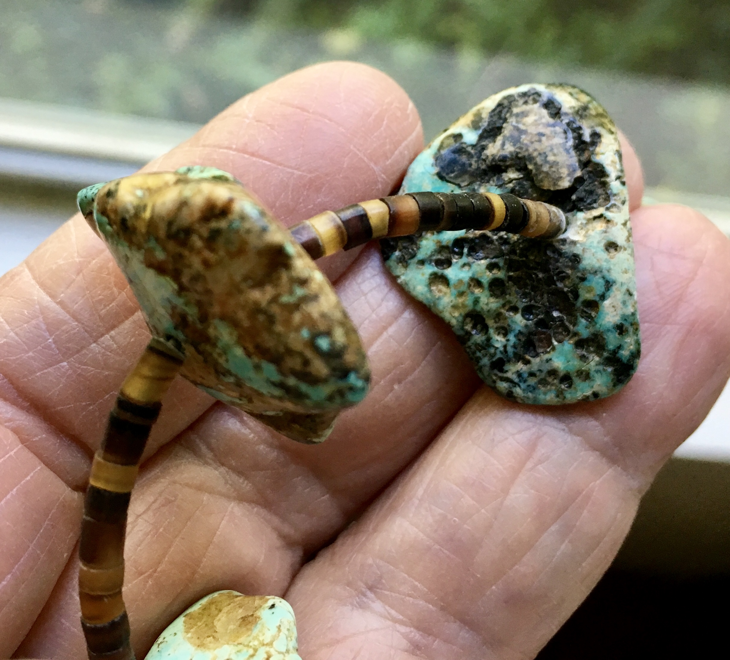 Bought this because it was different. Have no idea whether it’s Native American or not and would be interested to know. It looks to me like raw turquoise and there are two pieces that appear to have been glued on to the existing turquoise.
