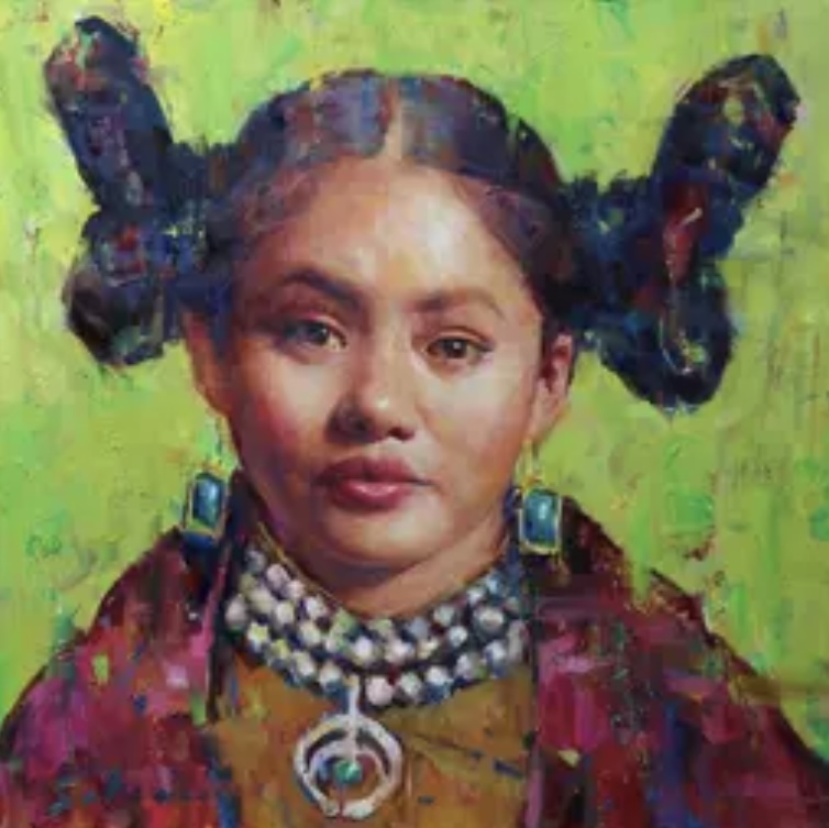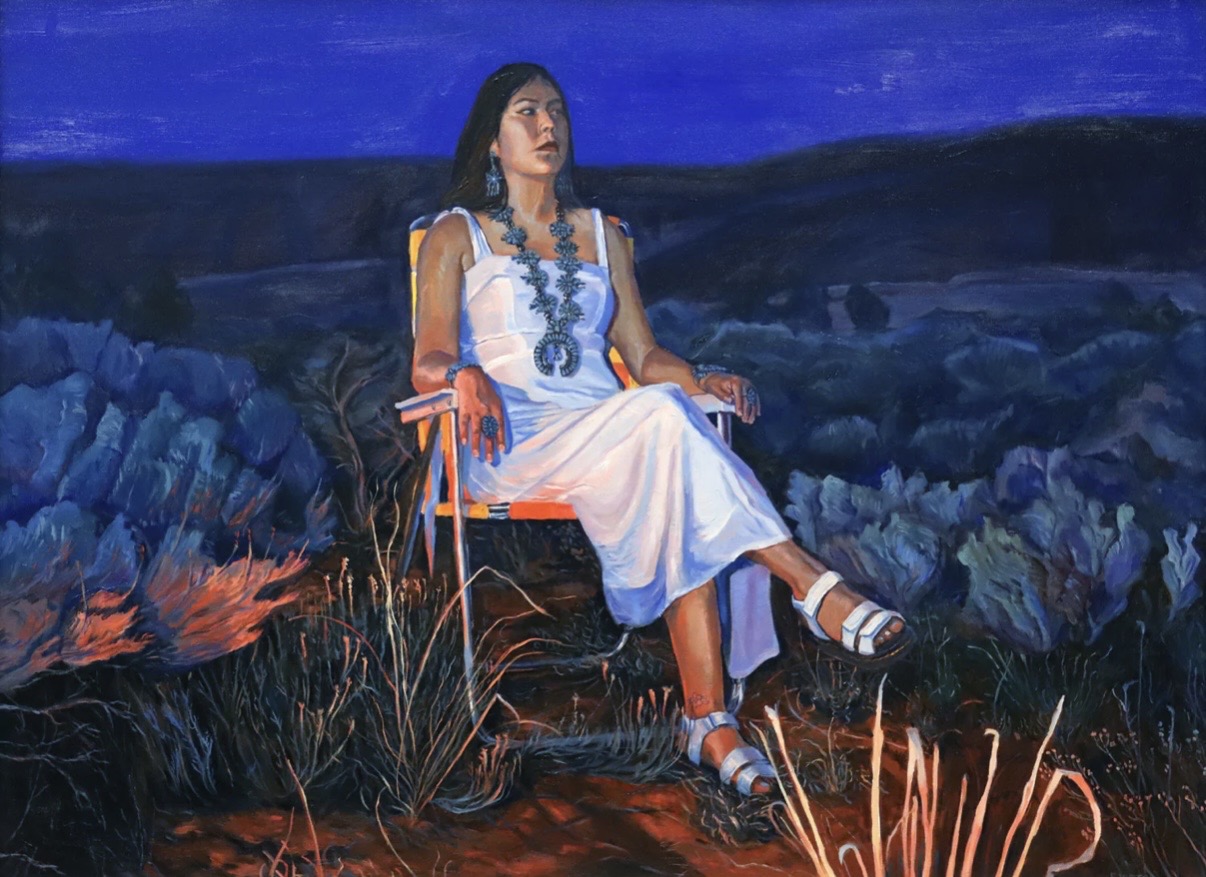 ETA: I find these two paintings refreshing since I rarely come across artwork with Native American jewelry and contemporary clothing - not to mention a folding lawn chair. ![]()