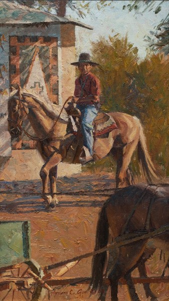 He had a seemingly insatiable thirst to paint; he decorated the interior and exterior of the Shiprock Trading Post, chairs, tables, picture frames, whiskey bottles and coffee cans, and was even known to adorn the shells of his children’s pet turtles. A self taught artist, he worked as a coal miner and farmer in the Four Corners region before becoming an Indian trader. Over the course of his life, he also served as a state legislator, a recorder of oral histories, and as City Police Judge.
