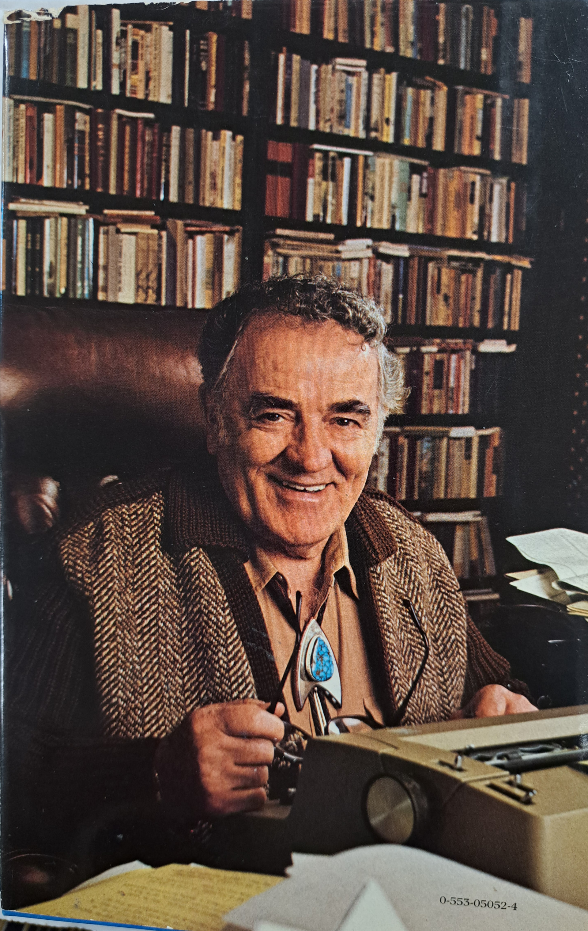 Here’s today’s goody from my library’s book donation sorting center (where I volunteer.) It’s the back of the dust jacket for Louis L’Amour’s book, “The Walking Drum”.