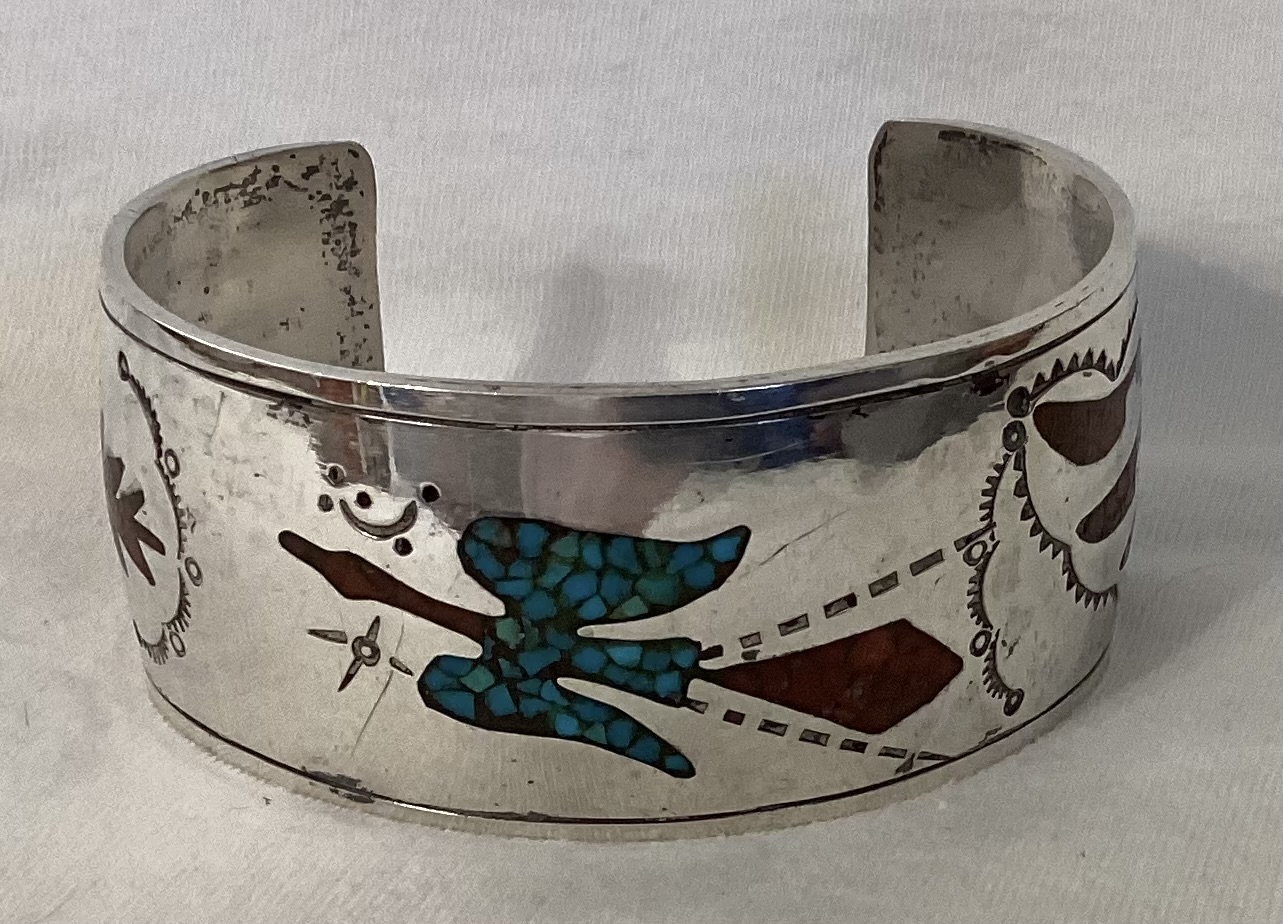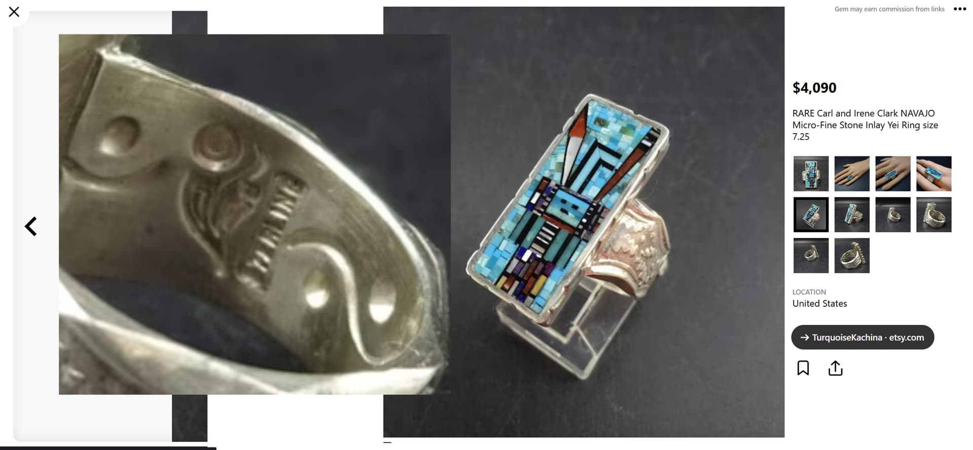 I actually think that Carl and Irene Clark buckle is a fake. Though the microinlay at first glance appears impressive, it’s nowhere near the detail and fineness that they are famous for, and it appears to have some block materials. The hallmark and silver work don’t look right either.