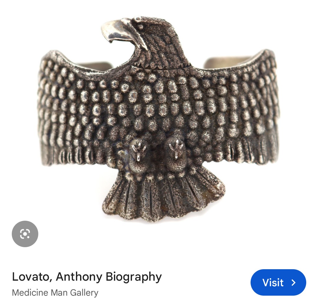 After our recent discussion in another thread about the Anthony Lovato corn maiden pendant I ran across this. I have been seeing Bald Eagles around here lately, so I love this cuff - although I don’t know what kind of eagle this is for sure.