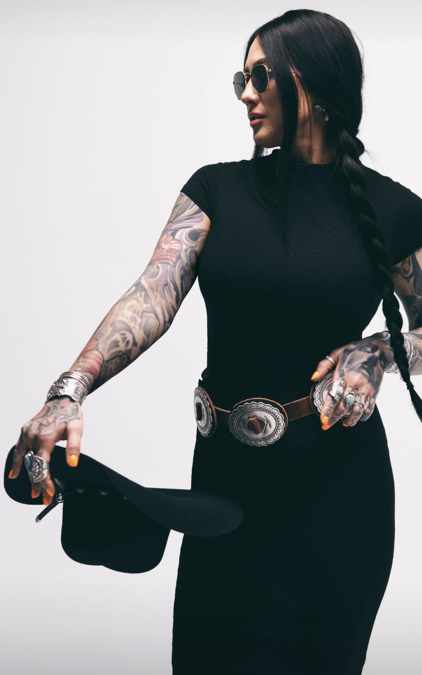 Tattoos? All I saw was the First Phase revival belt, the hatband, and her braids.