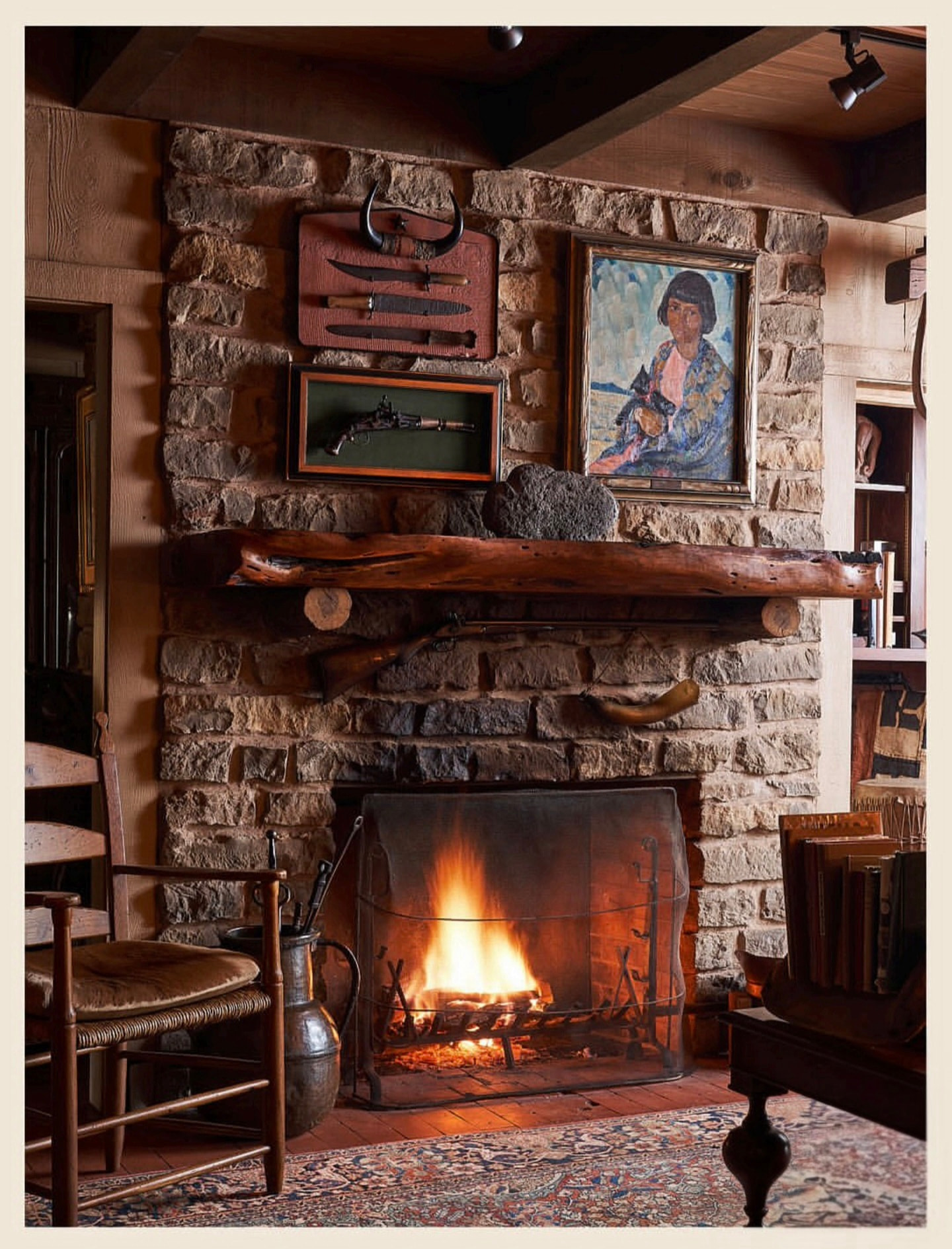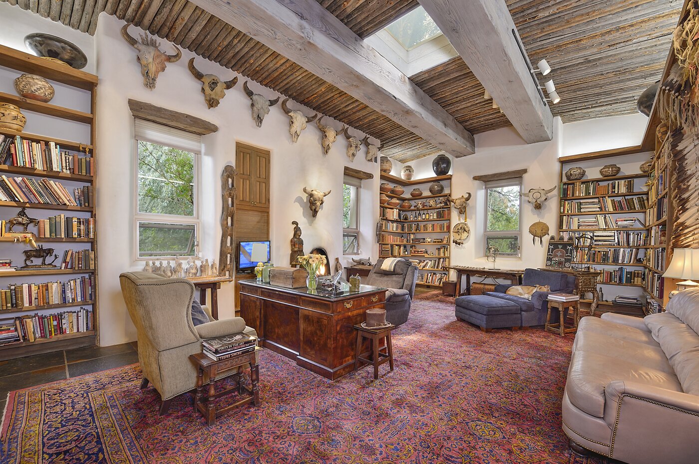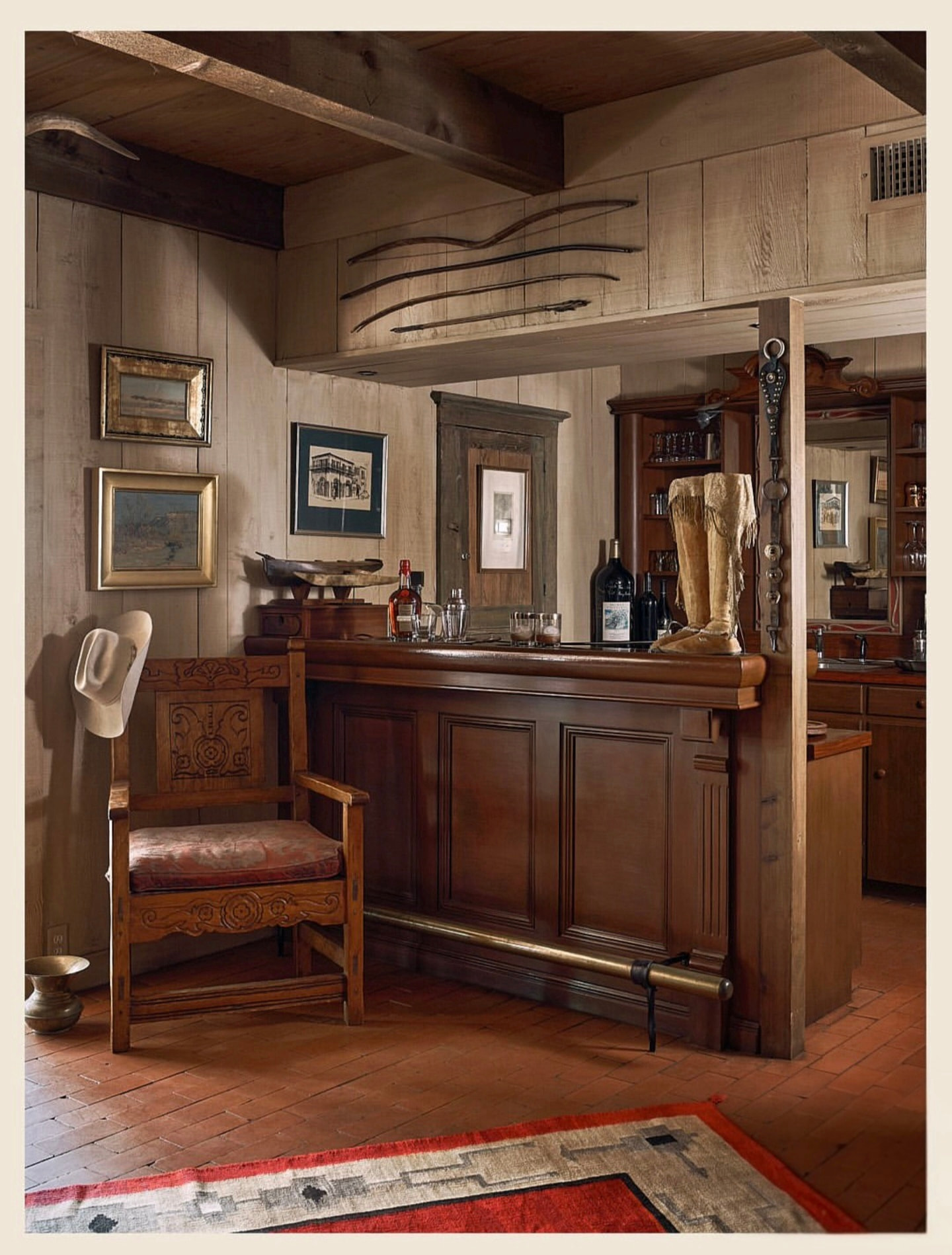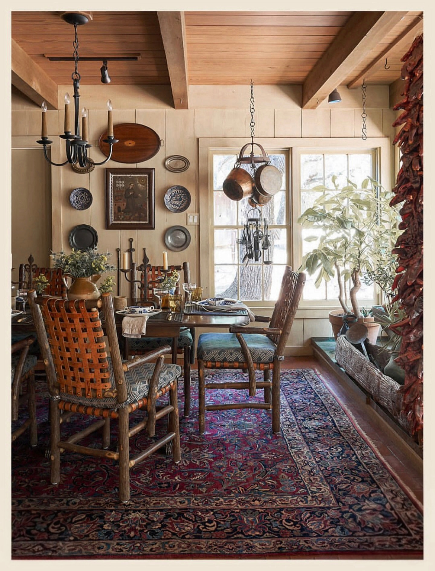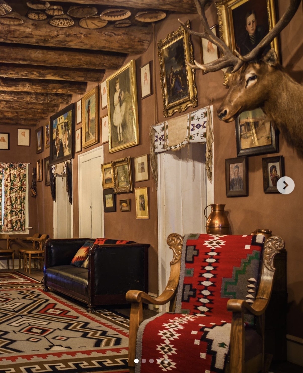 This is beautiful, and no doubt packed with history. Displaying baskets on the ceiling is so awesome, especially between beams: I love the nod to the old trading posts.
