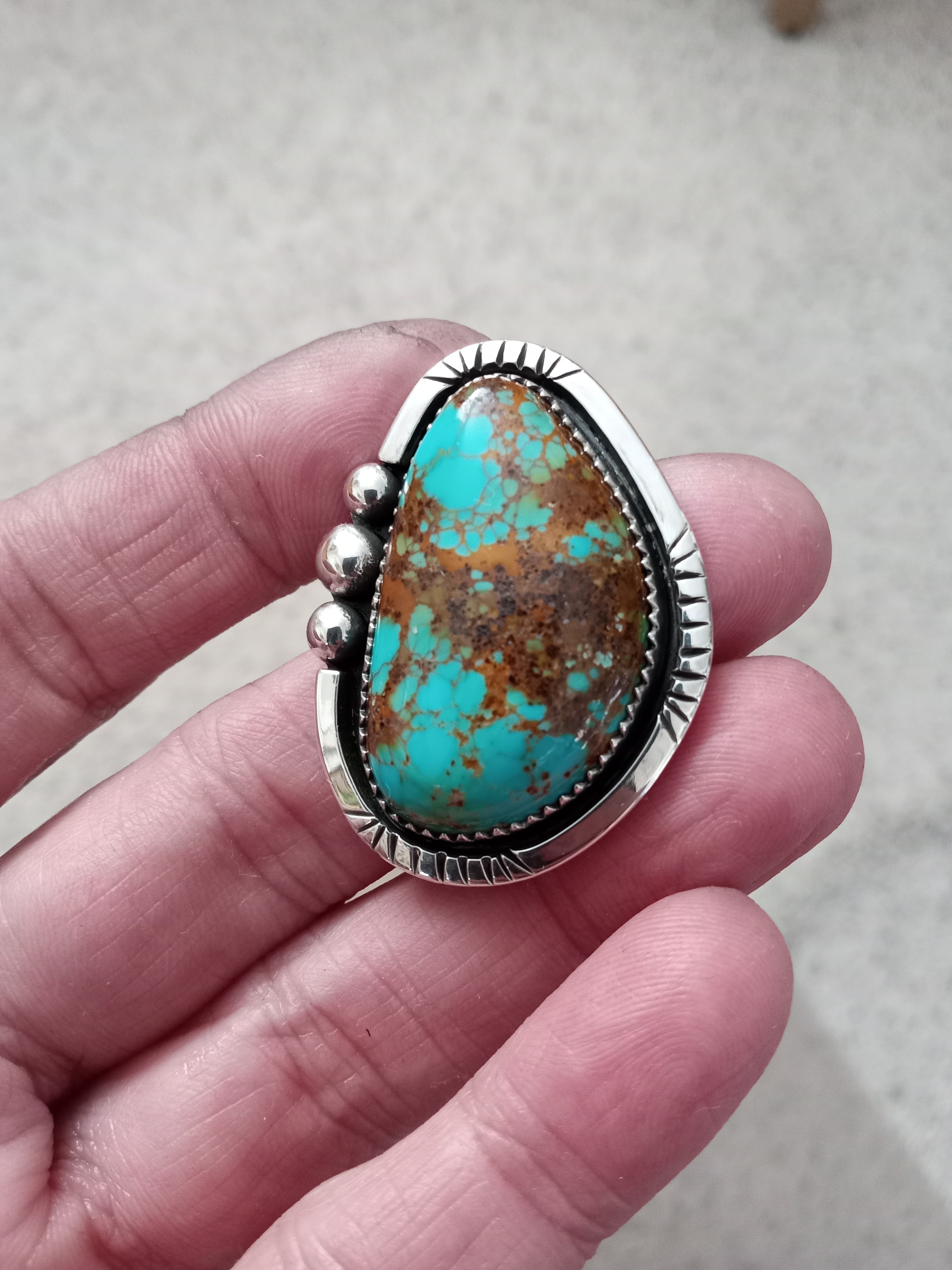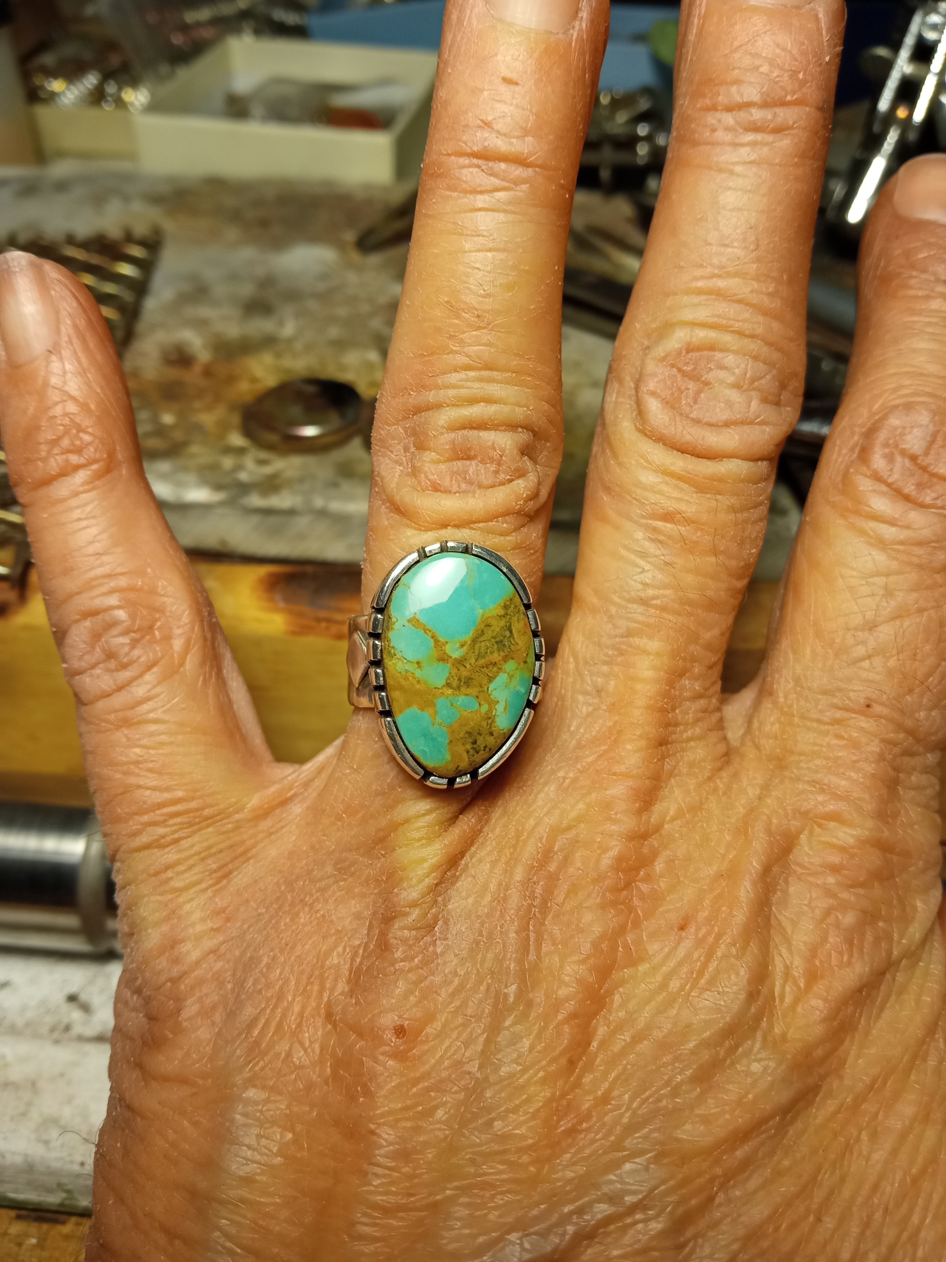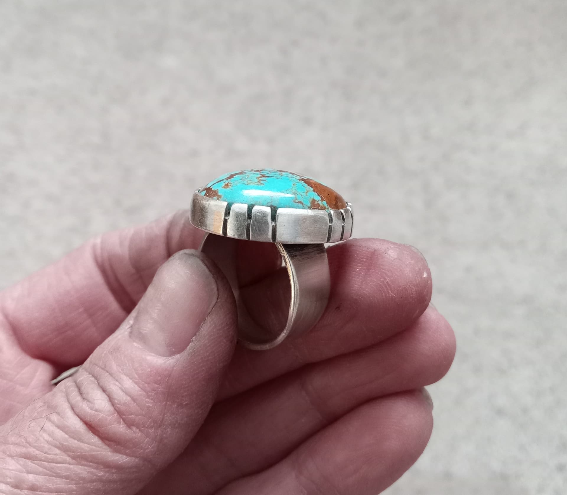 that #8 turquoise ring is great! Love that you made your own bezel rather than using the thin commercial bezel, seeing nice stones in the flimsy bezel makes me crazy.