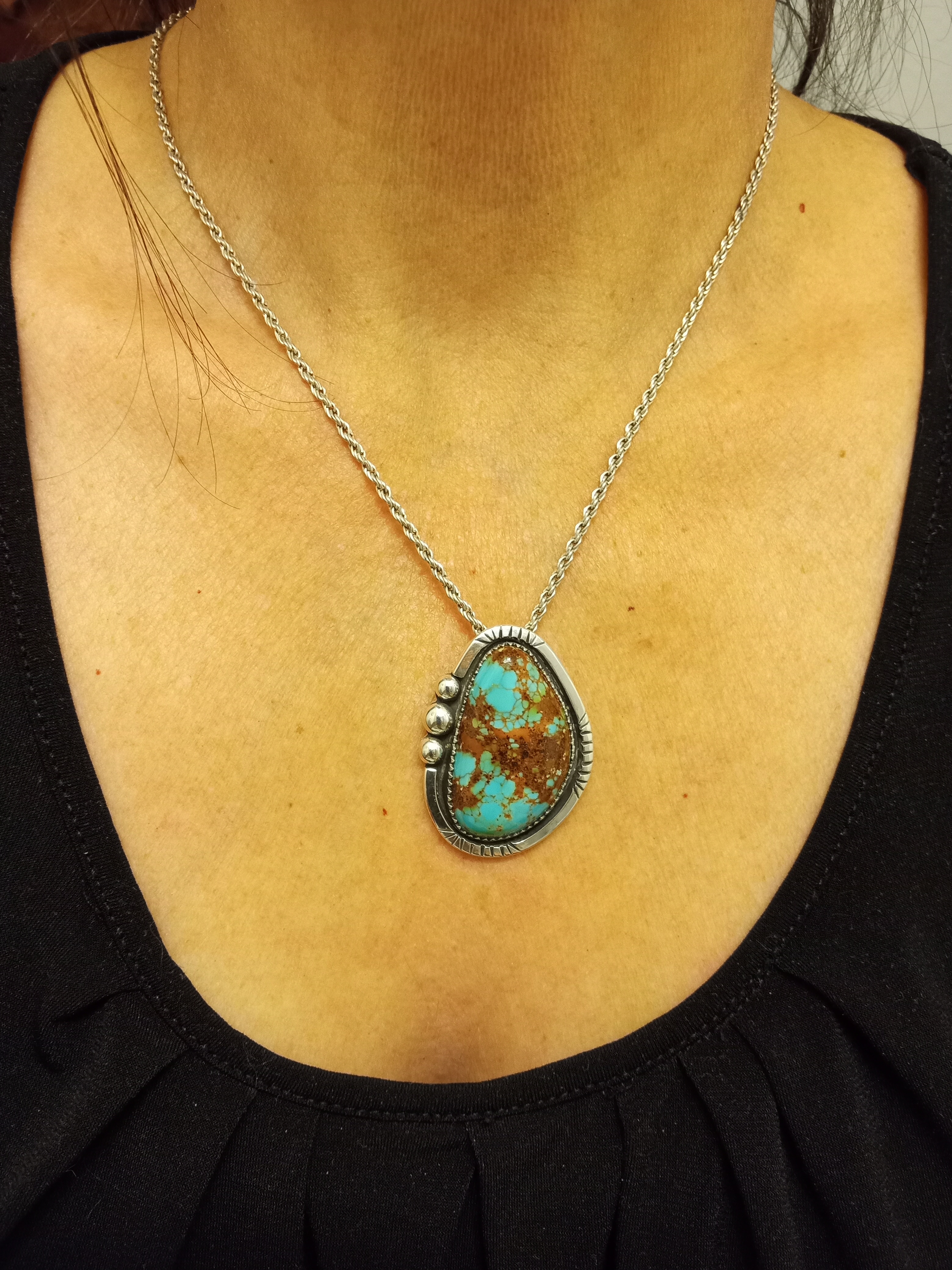 Years ago, a woman from Zuni Pueblo taught me silversmithing. When I get inspired, I make my own jewelry. Here are some pieces I made recently. I purchased the stones at a local gem show here in New Mexico.