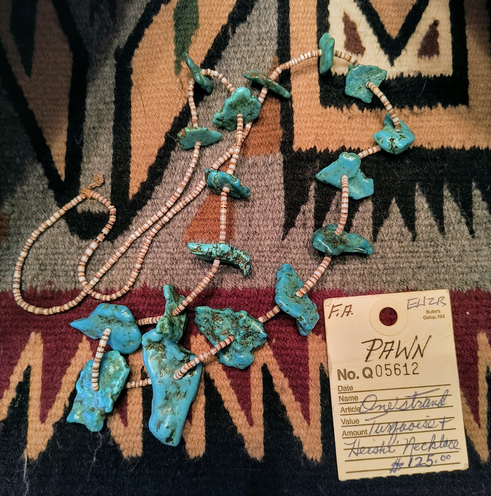 I’m looking at the fetish necklace in that case and it’s most likely an import because I see the dreaded armadillo fetish… and the fact the turquoise needs to be restrung would make me wary. But look to see if the turquoise looks hand drilled which would be a very good thing.