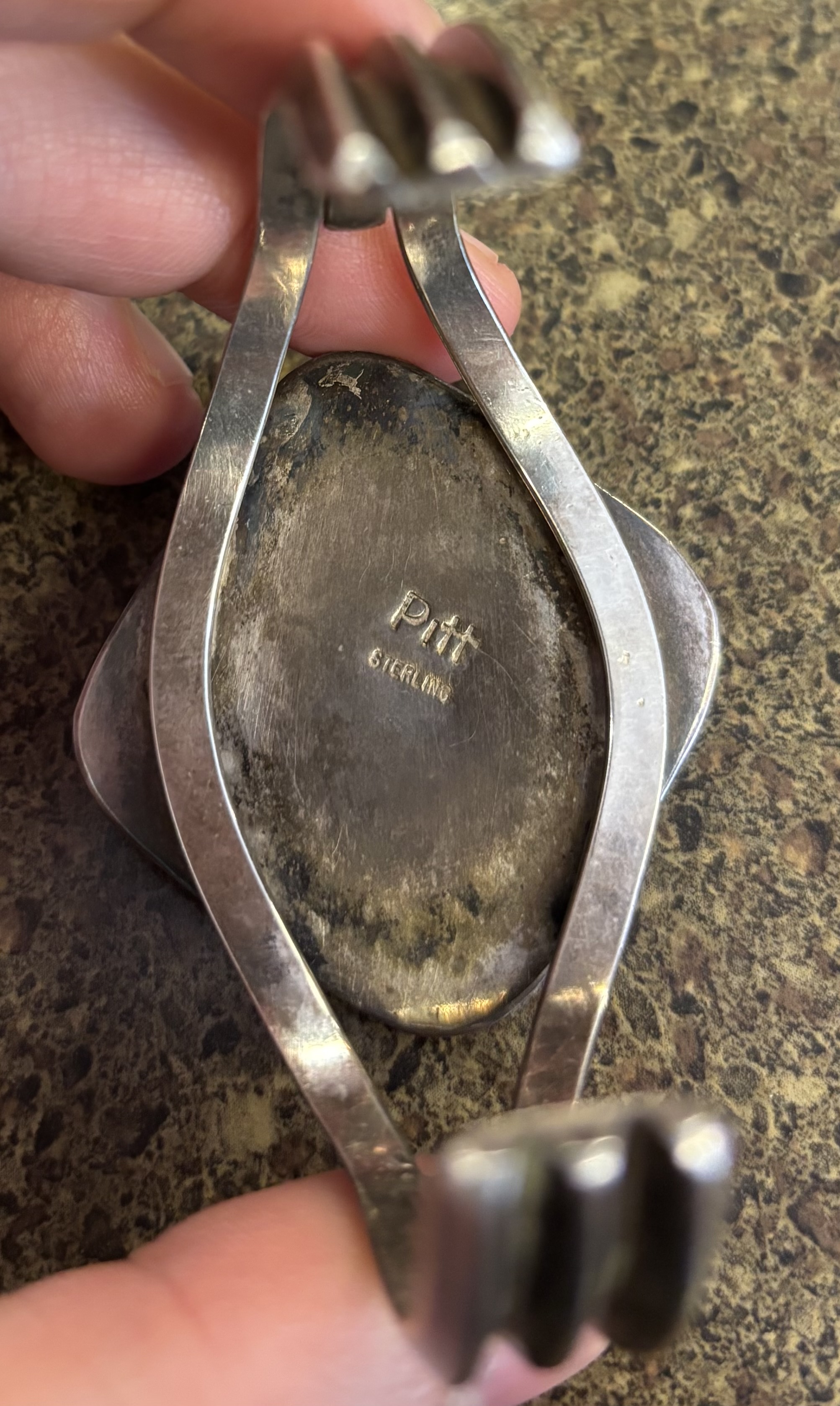 Im looking to help my mom identify her cuff bracelet! She received it from a relative who lived in Arizona, but she did a lot of traveling. On the back it is signed Pitt.