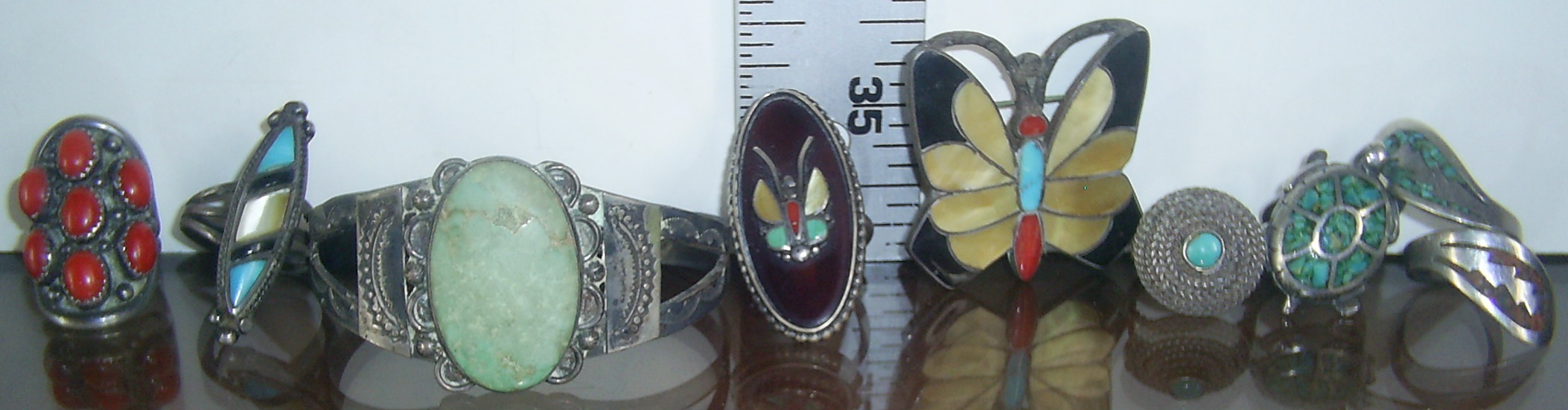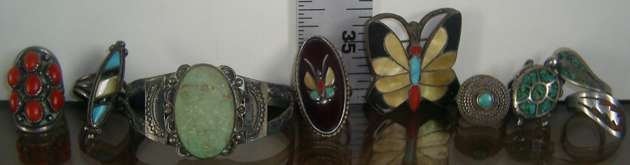 The butterfly ring seems vaguely familiar to me. I am going to look in my Zuni “Art & the People” book, as the name “Lasiloo” is coming to mind.