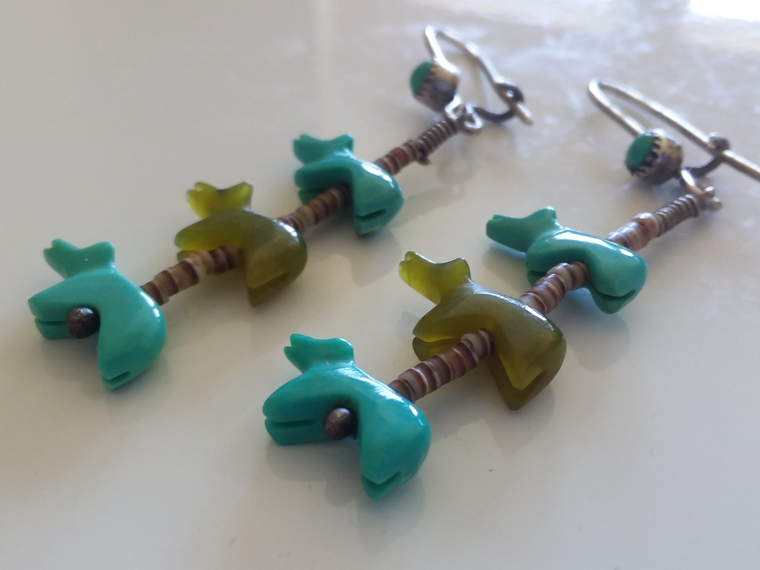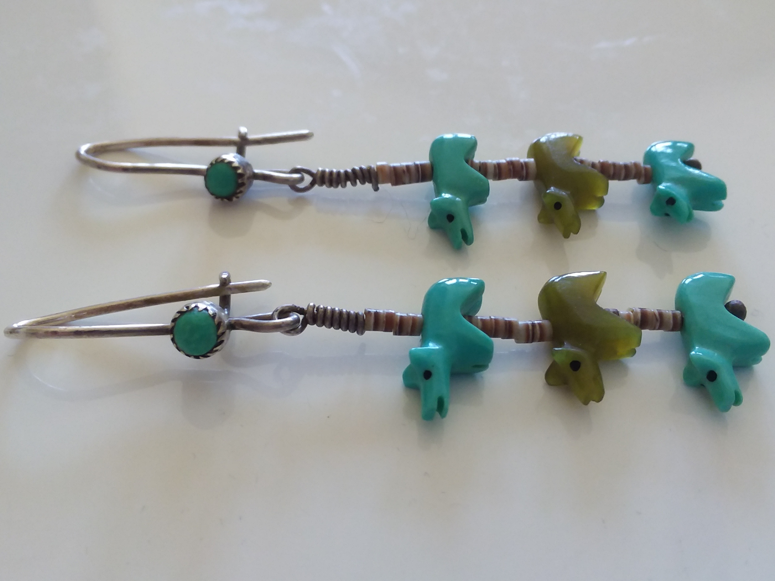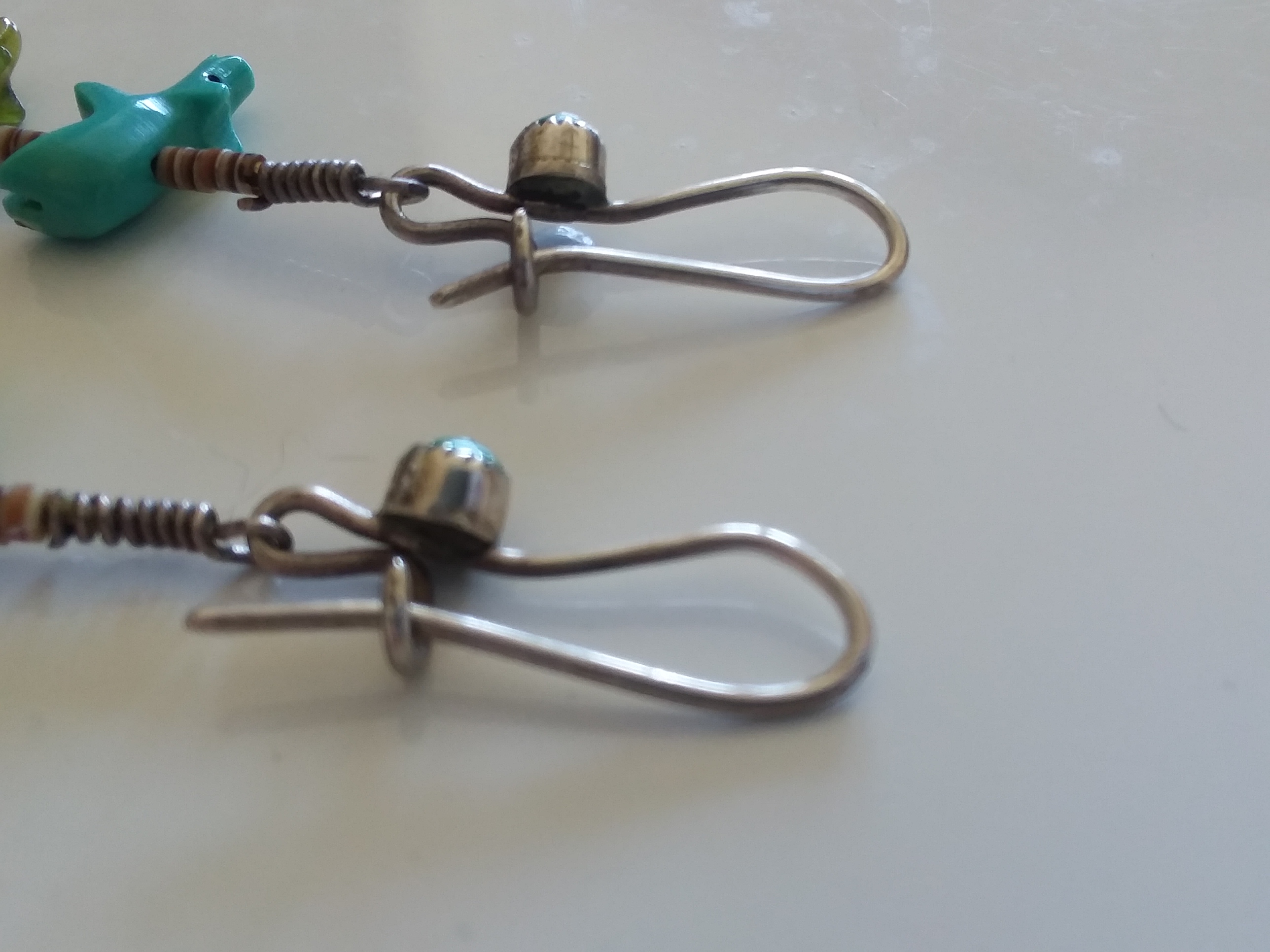 All of my Mother’s 1950’s wires (for pierced ears) were constructed this way. Her N/A style earrings might have had a sterling bead in place of your turquoise one. If very fine wire, they would wear at bend points and break. Earrings I’d purchase in the '70’s would have this same wire shape. If heavy, they would almost cut and drag down my ears. Usually I’ve changed them out to a post, keeping the original “hardware”. I’ve recently purchased some new longer silver bead earrings with a shepherd’s hook wire, which isn’t really long enough to counter balance the weight, so I’m replacing with a self manufactured heavier gauge and longer shepherd’s hook wire. If changing the hard wear makes them more wearable, do it, just keep them for authenticity down the road. Not sure when shepherd style hooks became common place.
