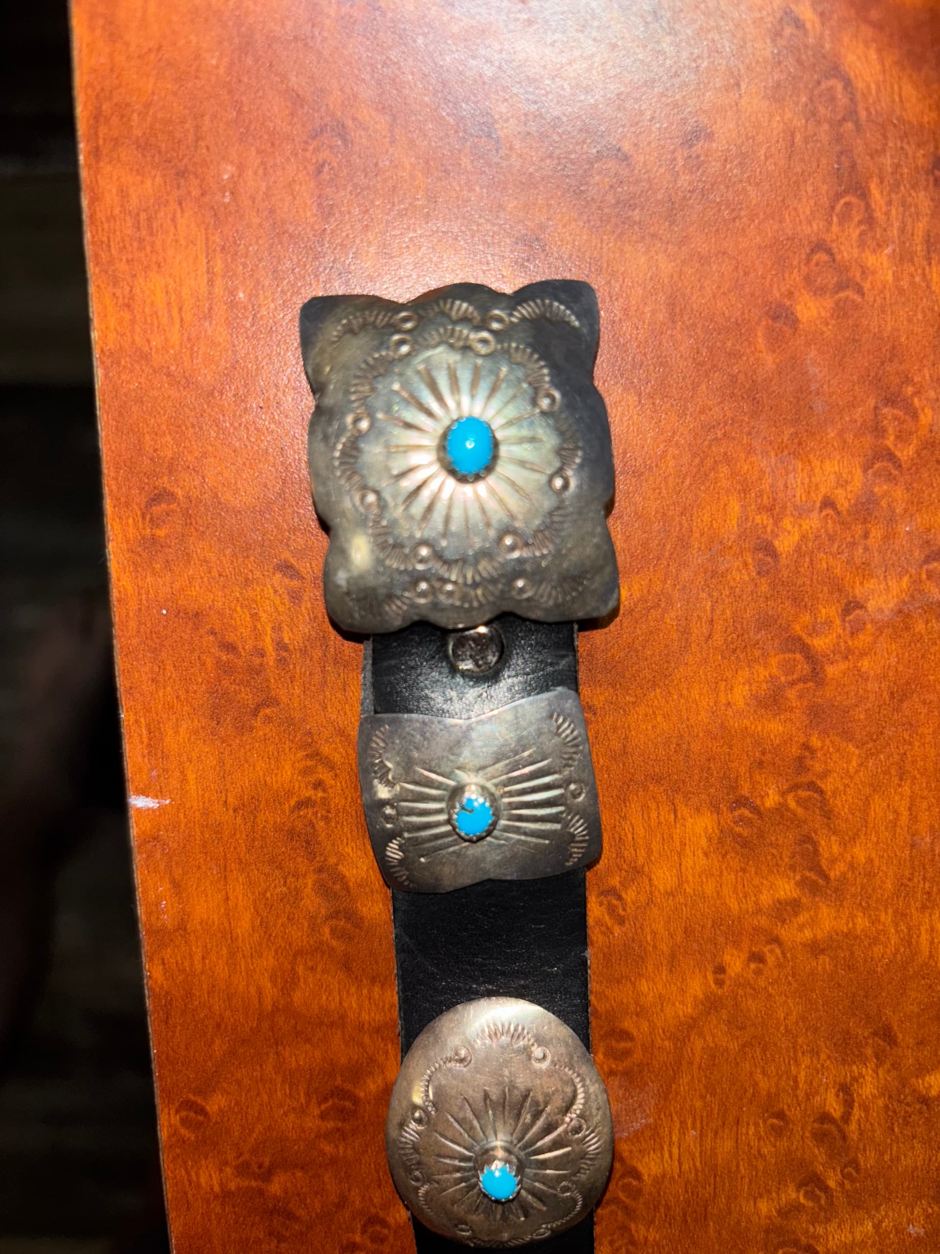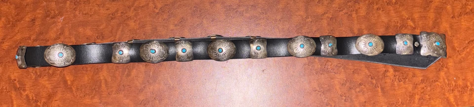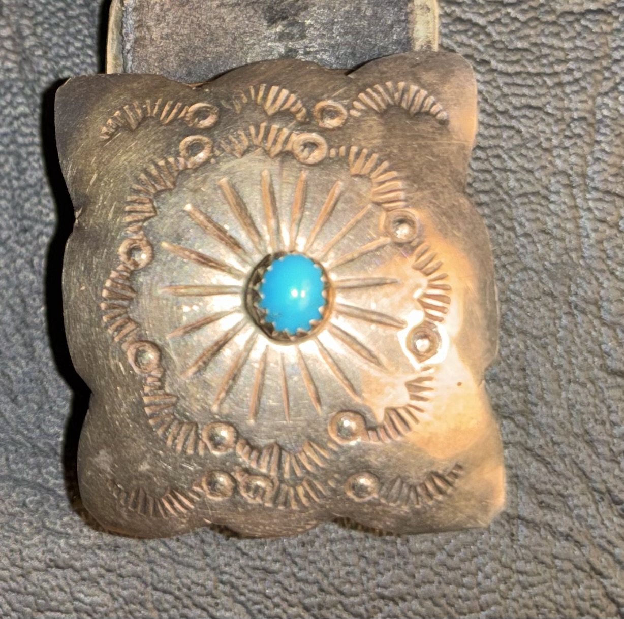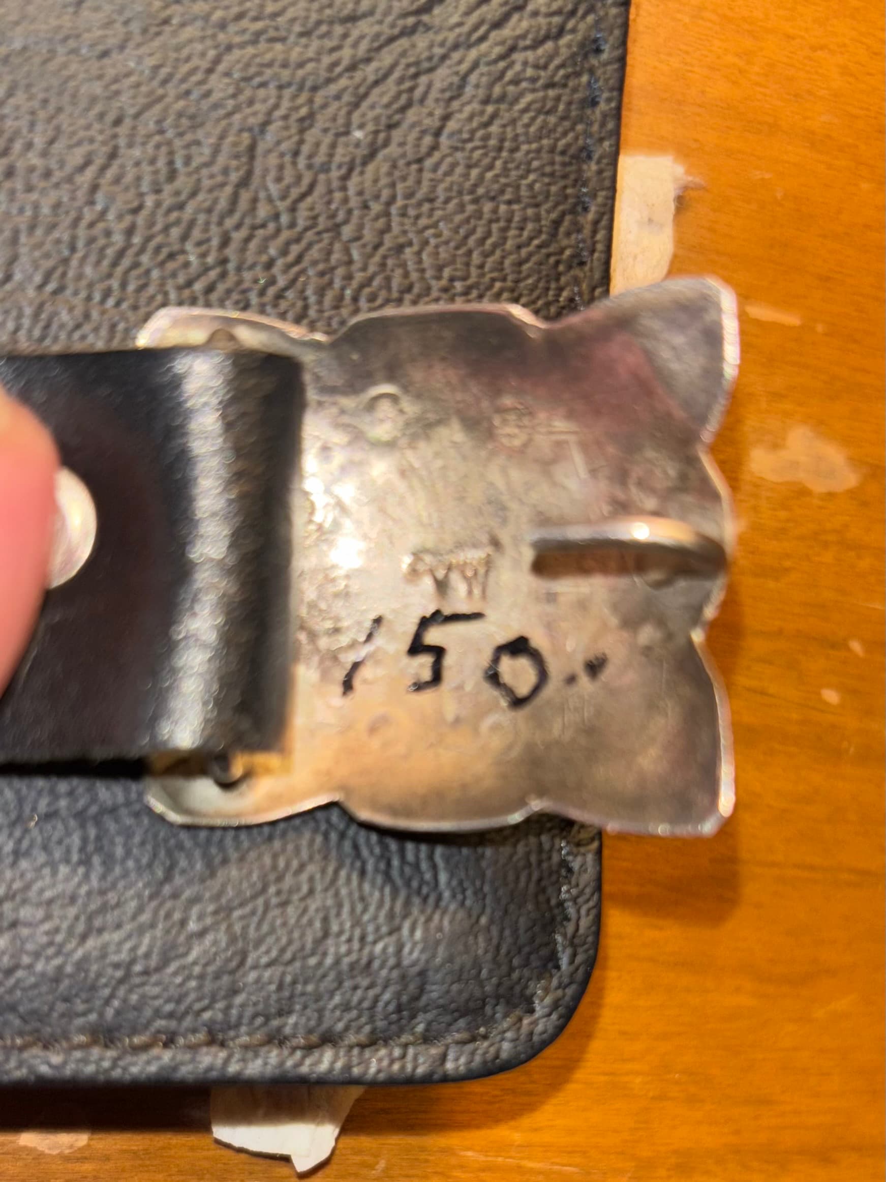 I have what I believe is a Concho belt. My mother gave it to me and I am just trying to figure out what I have. It was purchased in Sante Fe New Mexico about 35 years ago. I’d also like to know what the value is. The price on the inside of the buckle was on it when my mother got it. I can’t tell what the stamp is my eyes are bad. Hopefully my photos will help. Thank you in advance.