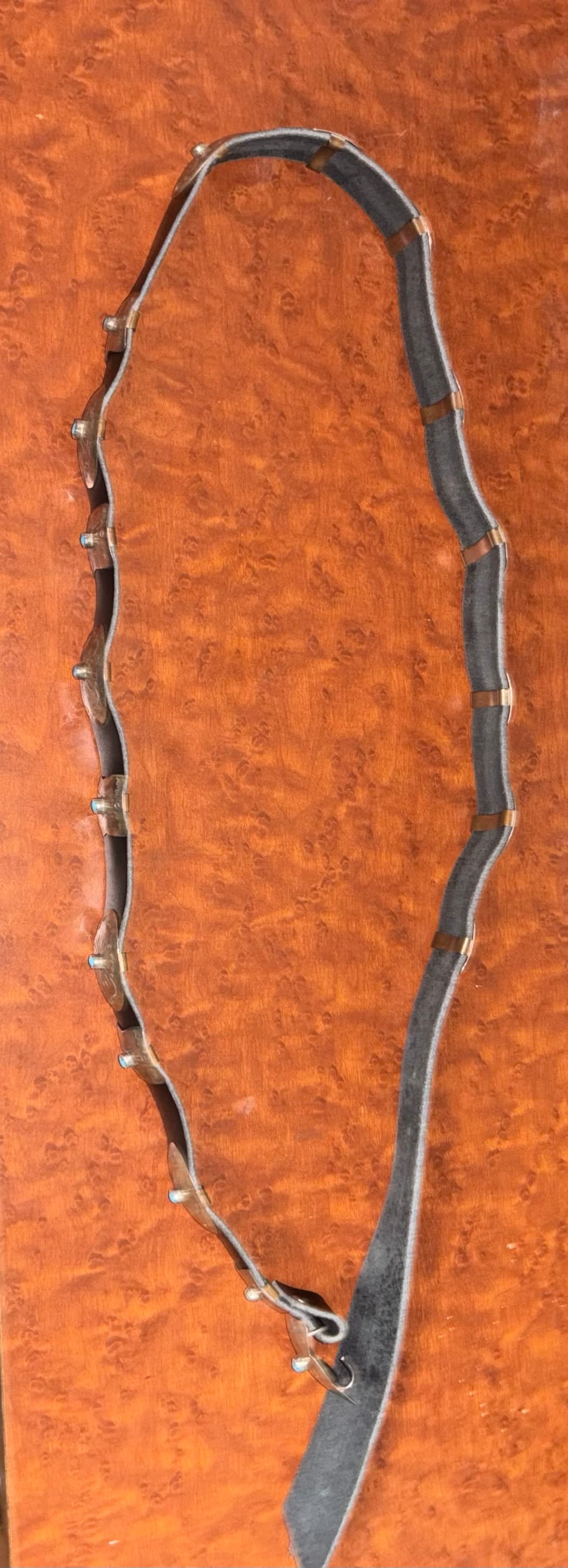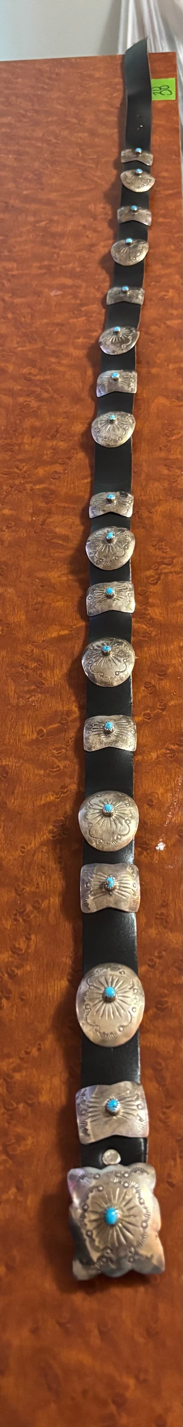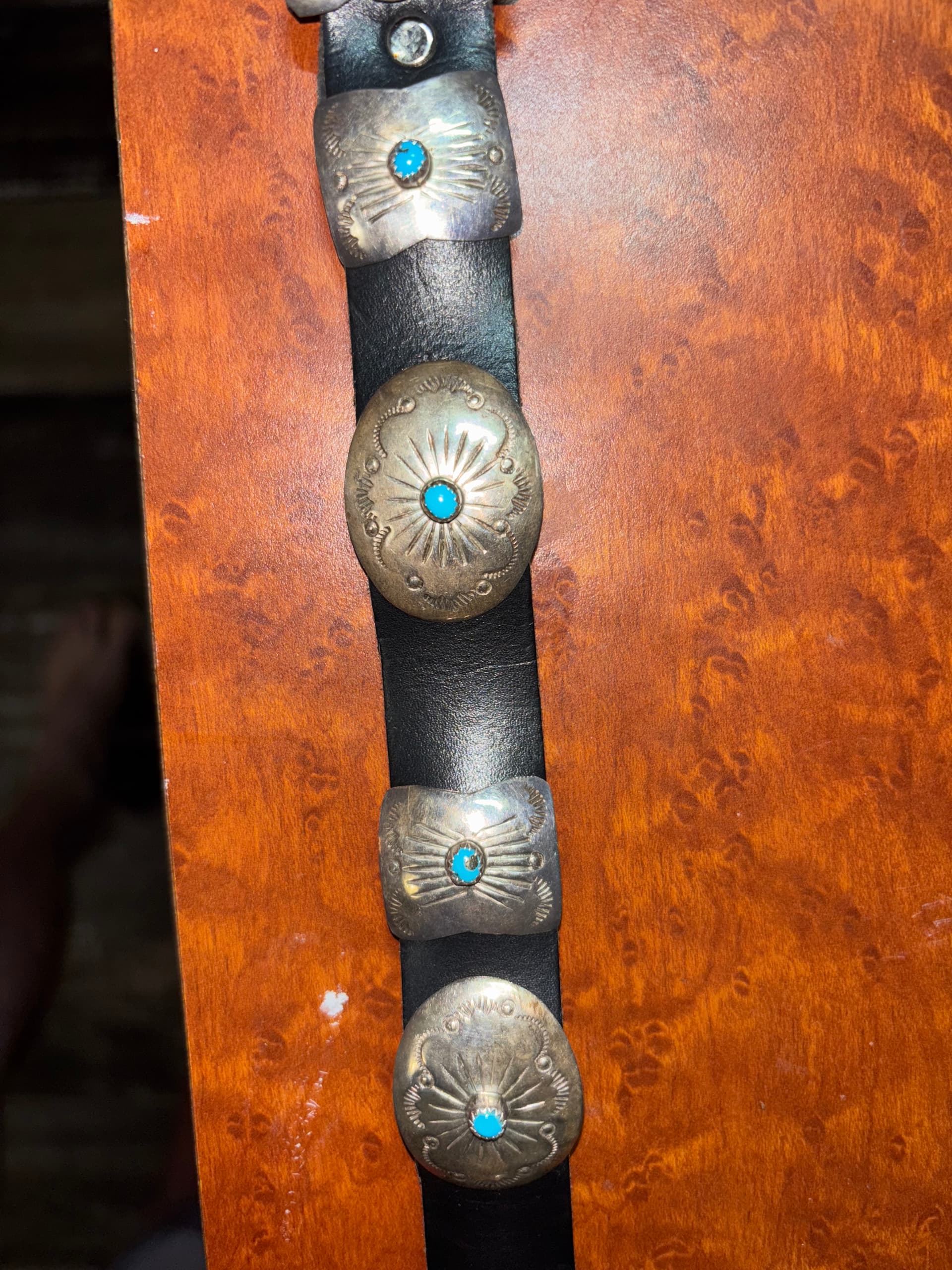 I have what I believe is a Concho belt. My mother gave it to me and I am just trying to figure out what I have. It was purchased in Sante Fe New Mexico about 35 years ago. I’d also like to know what the value is. The price on the inside of the buckle was on it when my mother got it. I can’t tell what the stamp is my eyes are bad. Hopefully my photos will help. Thank you in advance.