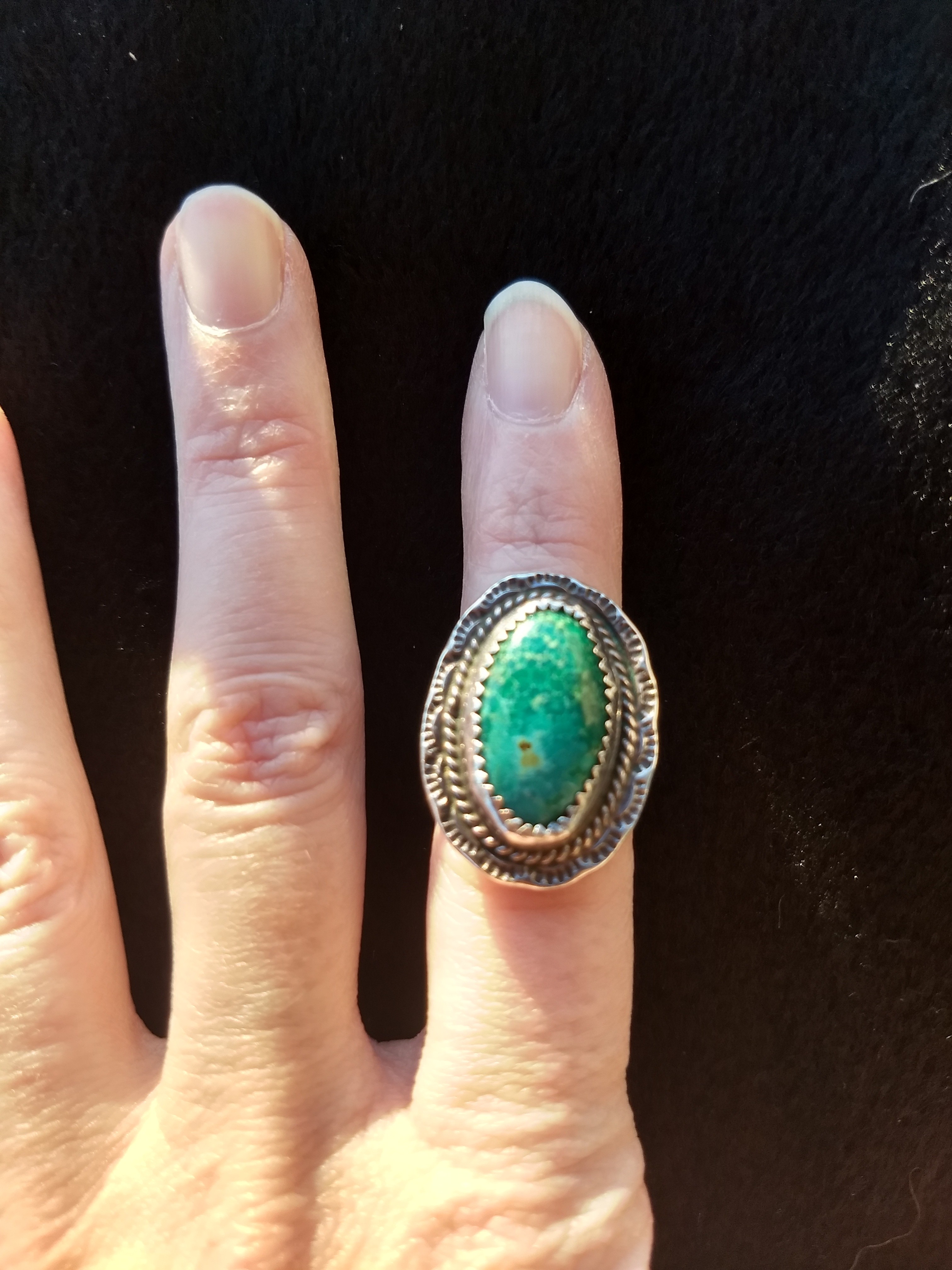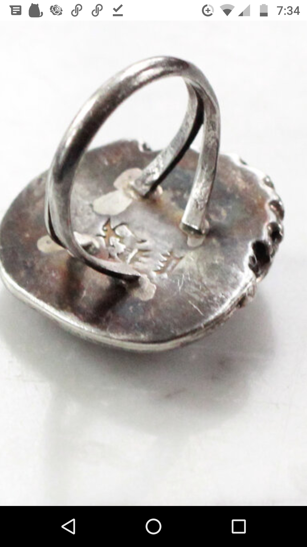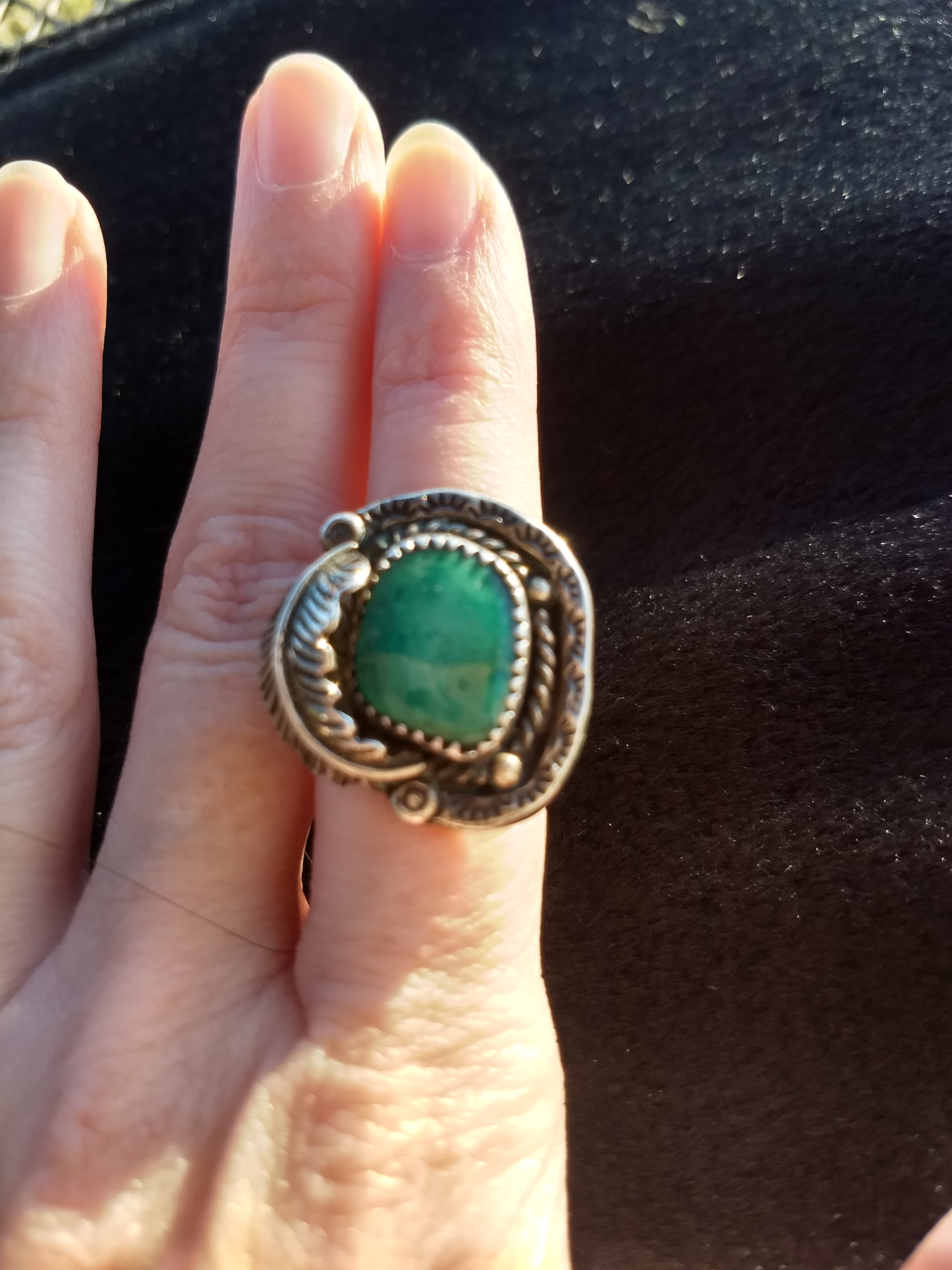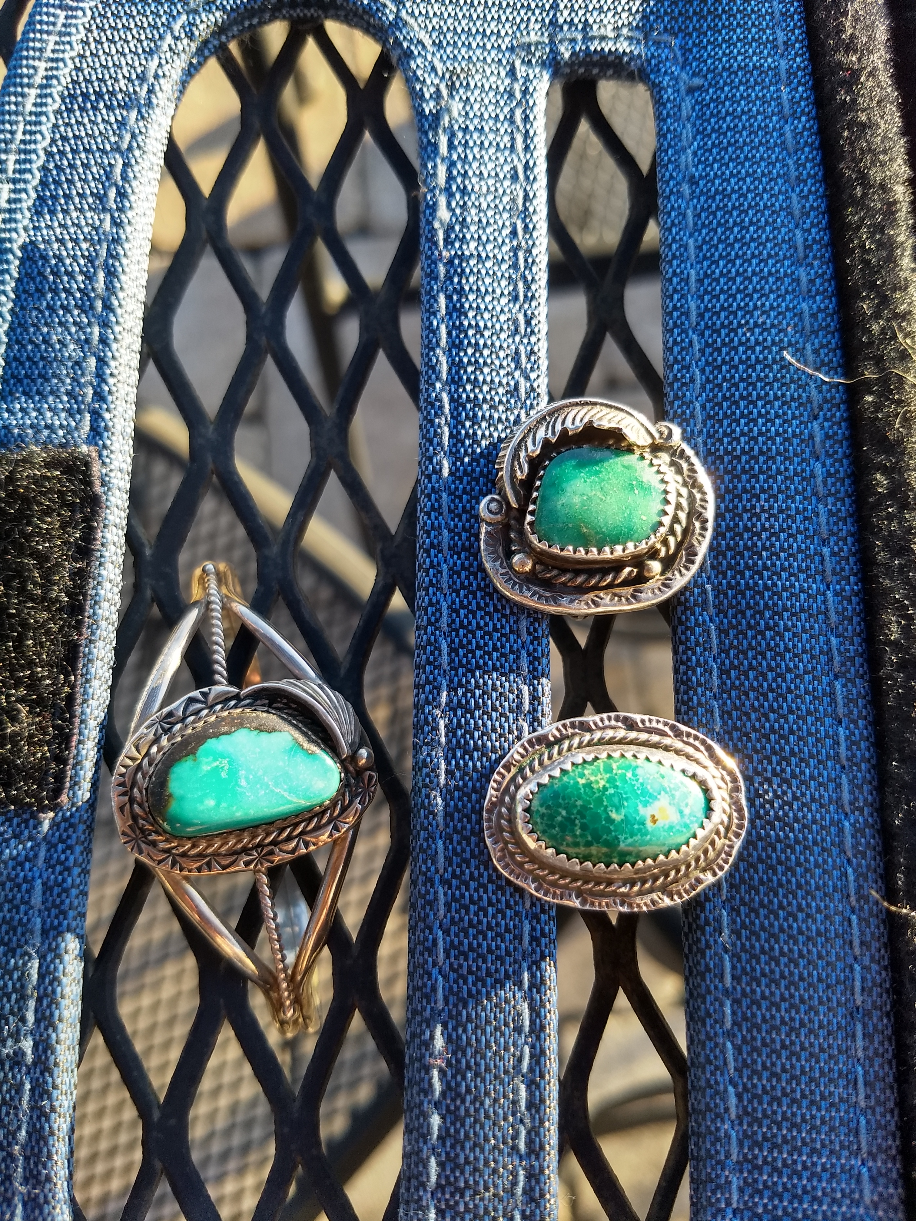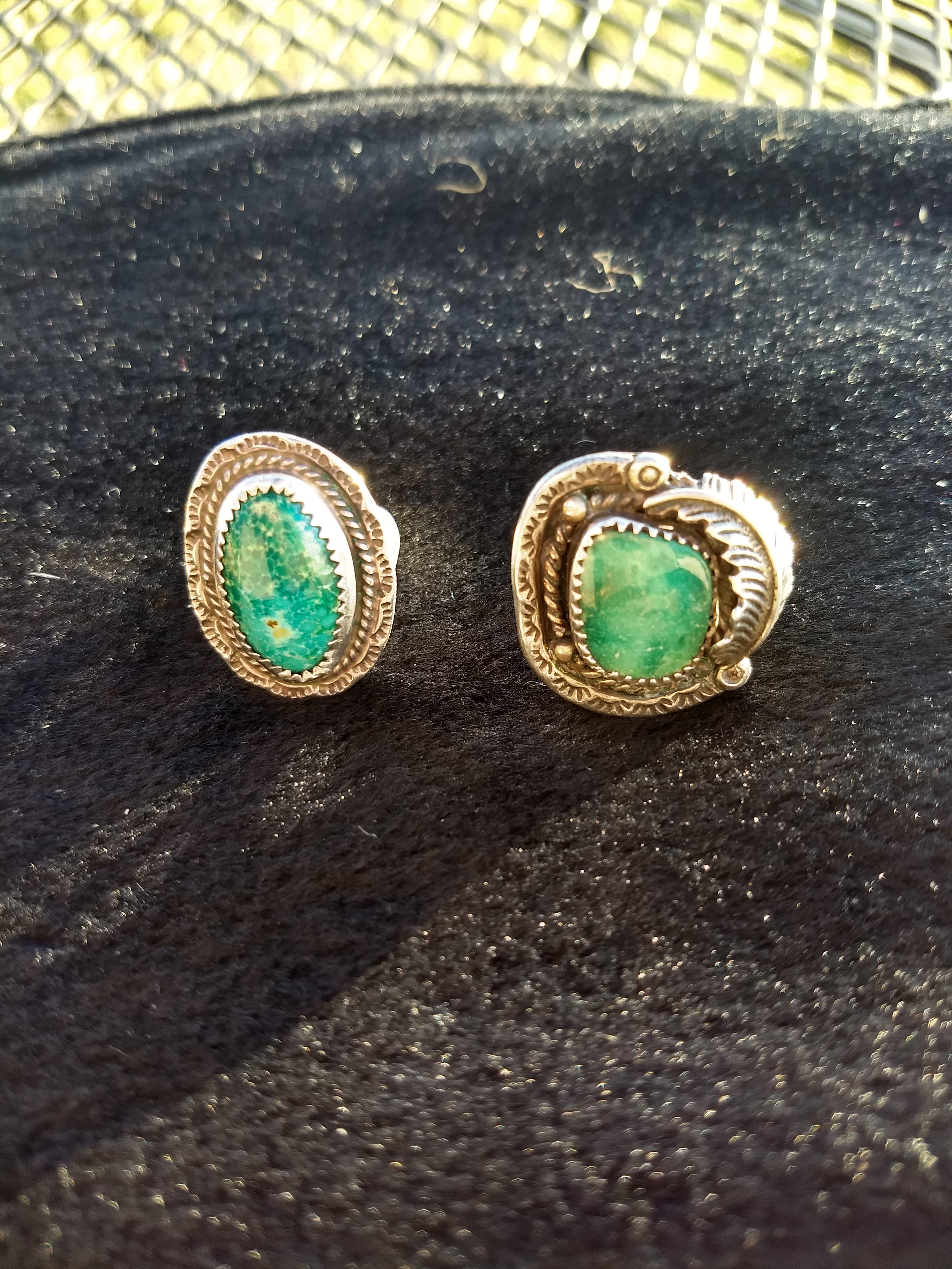 Just realized 1st pic of 2nd ring is out of focus. Here is a better one. This has both rings and a cuff that also has a green stone (turquoise).
