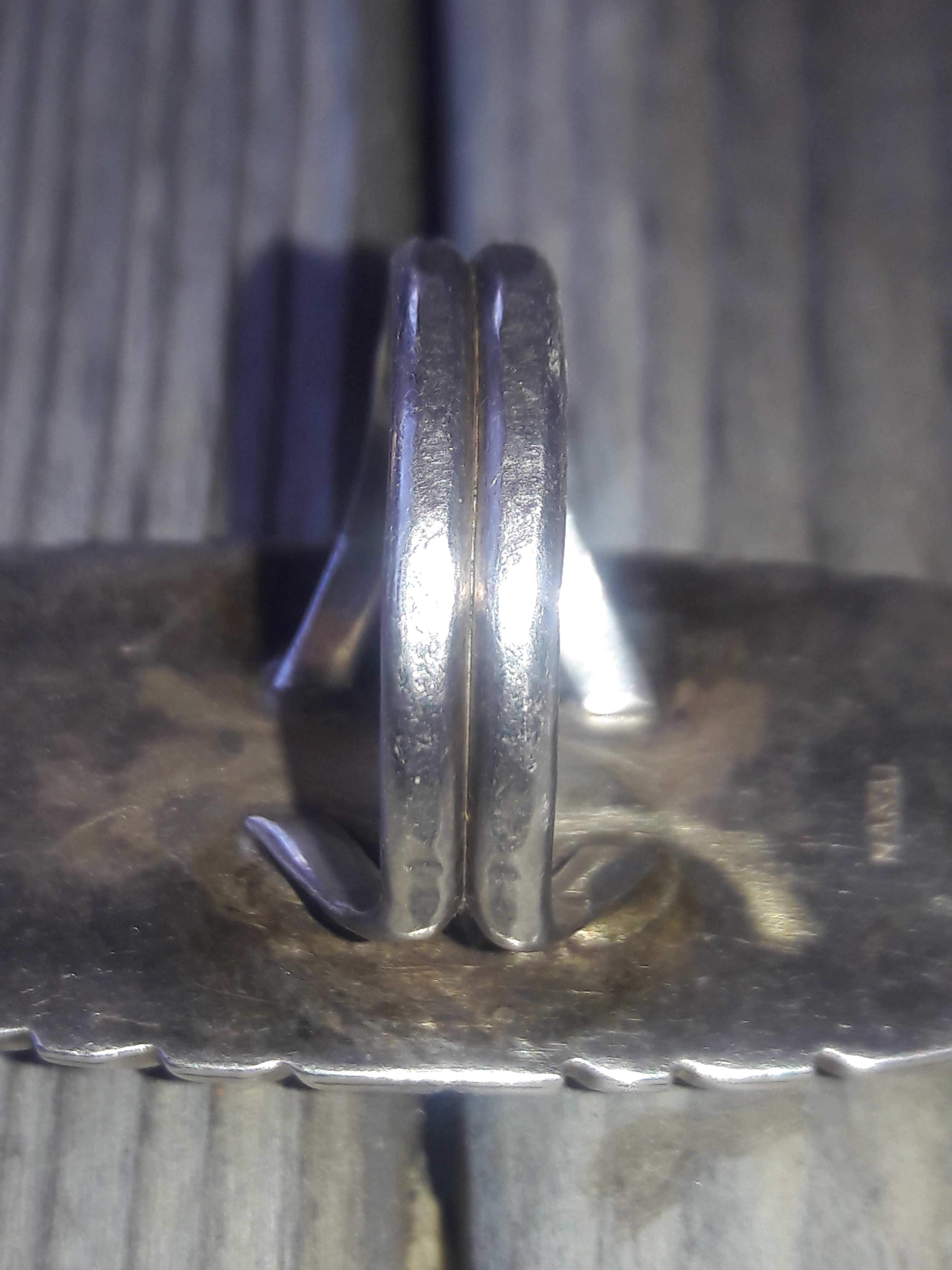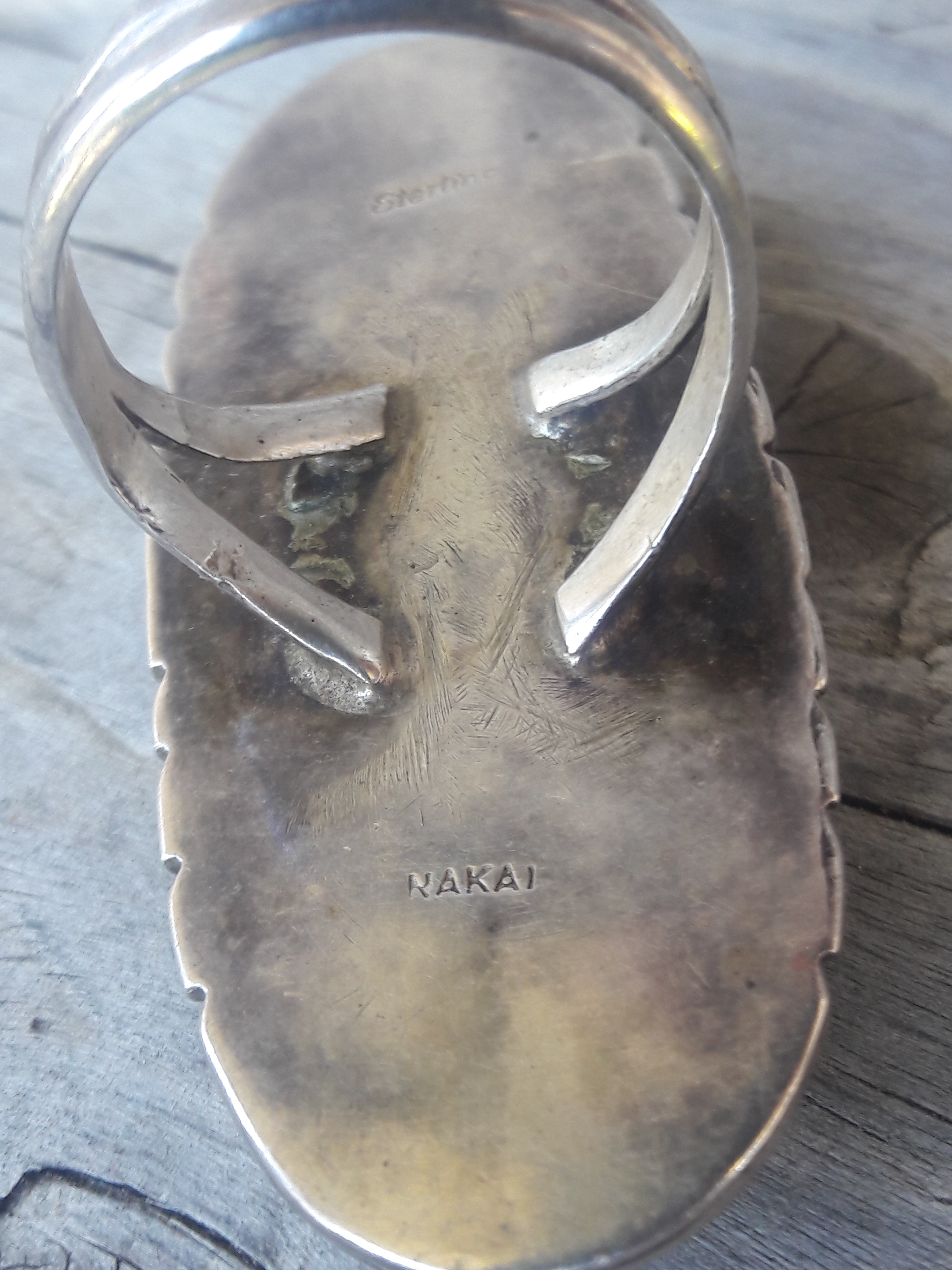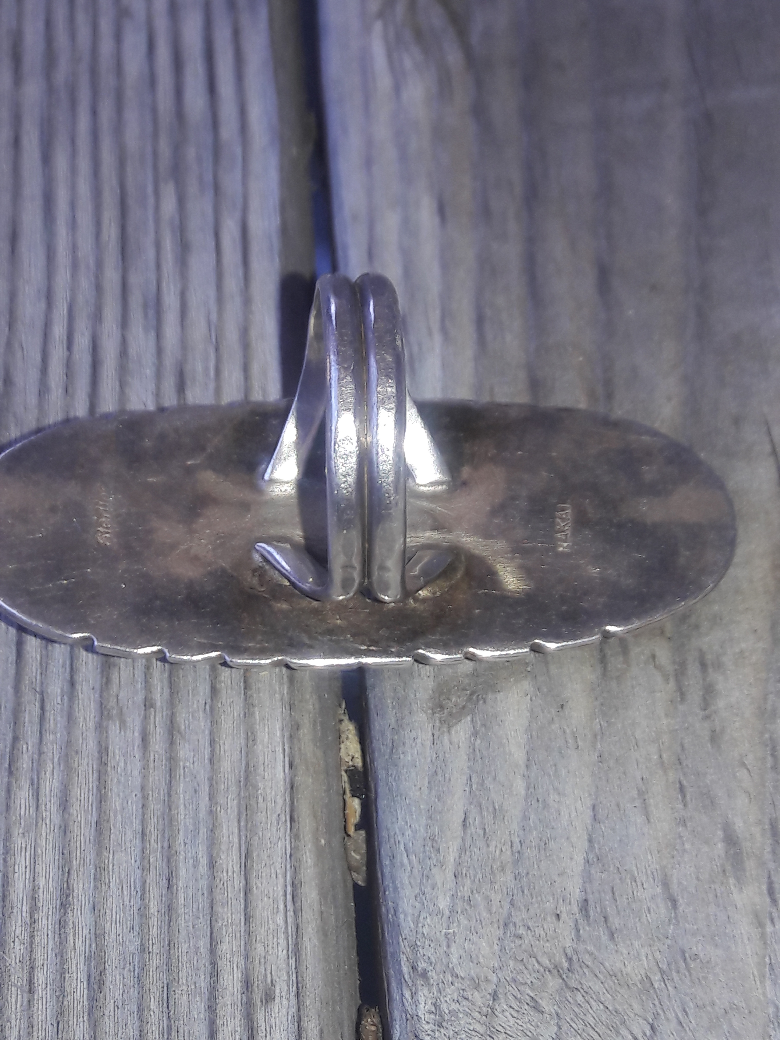 Hello this is a lovely George Nakai Navajo Sterling ring with a beautiful malachite stone (African malachite)…probably 70’s-80’s and would sell for about $65-100 around me because of the size and Navajo origin😍 Happy Hunting