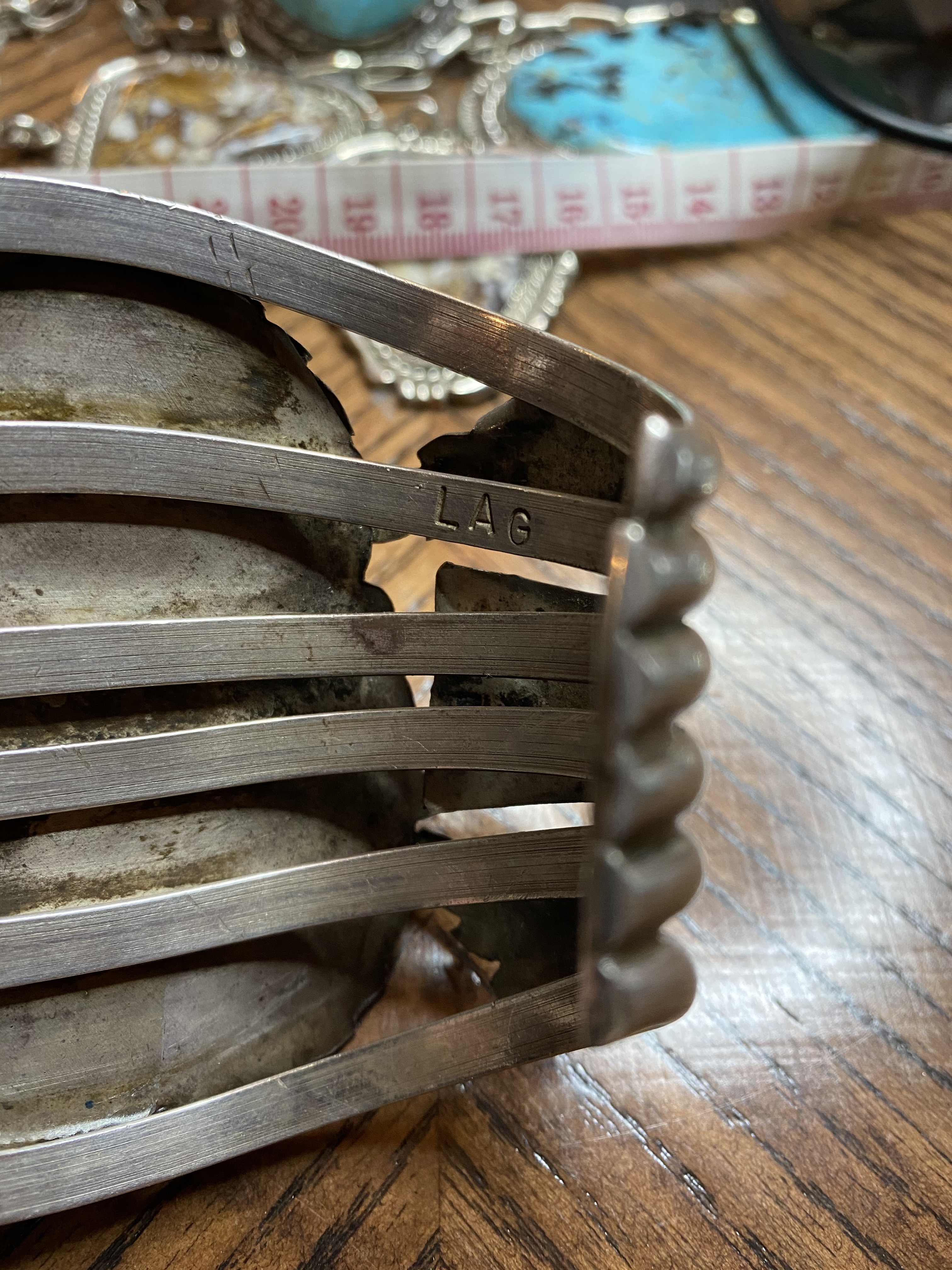Stamped with LAG which I have not been able to identify the artist. I am assuming maybe Royston on the stone it weights a total of 184 grams.