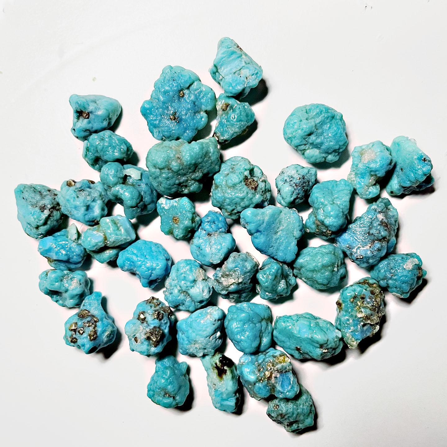 I am unfamiliar with how turquoise was stabilized then. Would there have been clear, crystal like pieces that remained attached to some of the nuggets?