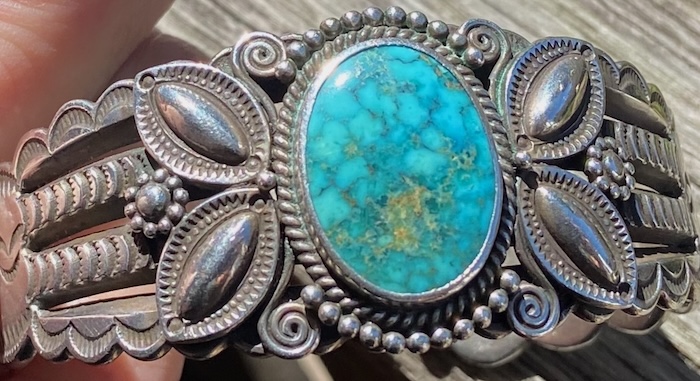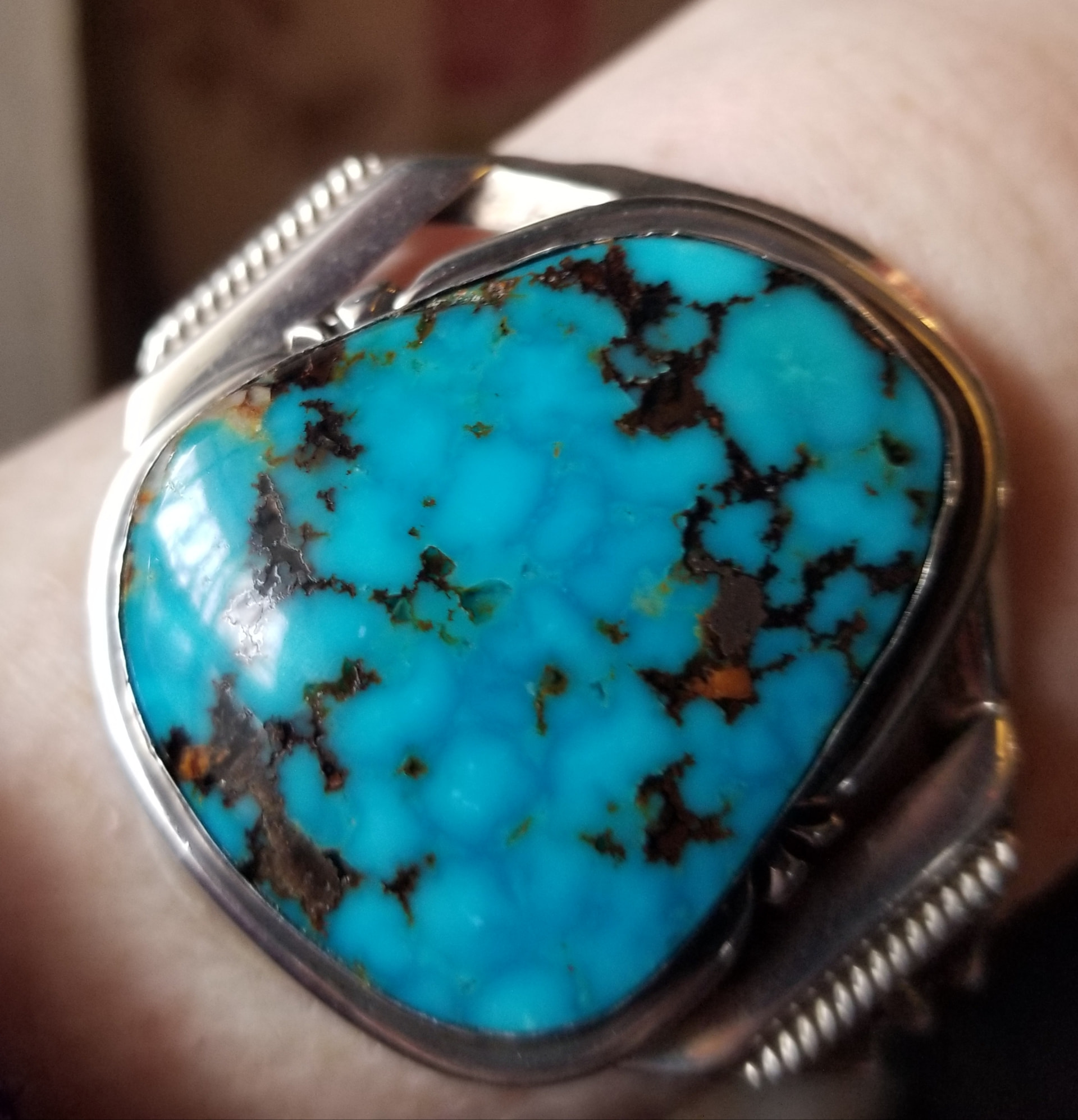 Cool topic. I’ll share one of my Perry Shorty bracelets with a great stone. I originally suspected it was #8 but then after visiting the Turquoise Museum last fall I now think my stone most closely matches their examples of WW Kingman. If anyone has thoughts, chime in. I mean to write Perry to ask but haven’t gotten to it. Pics in sunlight: