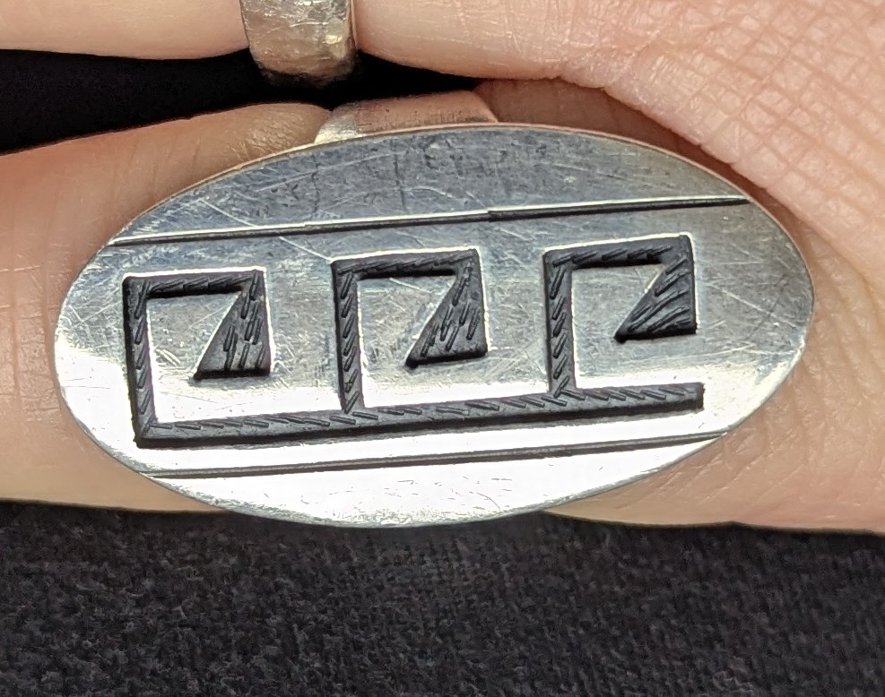 As Steve has pointed out, this does not look like an original artistâs hallmark. Looks to me like something where the silversmith was handed an original ring with an instruction like âMake me 20 of these, and make sure it has a hallmark like this on themâ.This happens all the time, and for some shops itâs standard operating procedure.